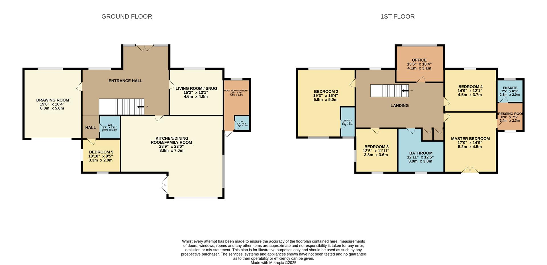 5 Bathrooms Inc: 2 En Suites, Family Bathroom & 2 Ground Floor WCs