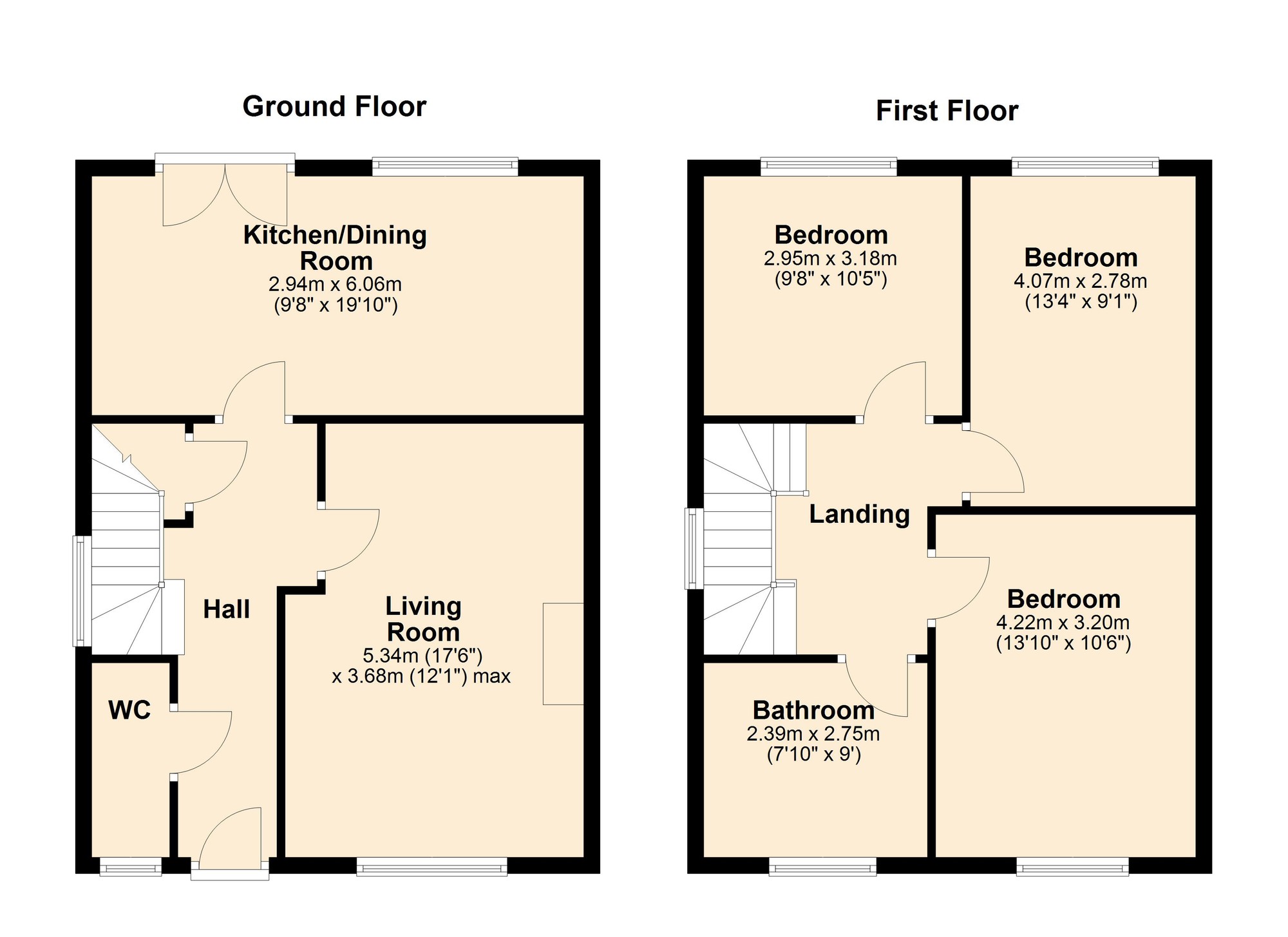 Bathroom on the first floor with bath, WC and wash hand basin. Separate shower cubicle