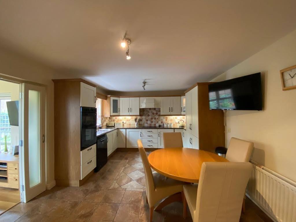 Having excellent range of eye and low level units, matching pelmet over window and extractor hood, tiling between units, 1 1/2 bowl stainless steel sink unit with mixer taps, hob, double oven, plumbed for dishwasher, integrated fridge / freezer, tiled floor, ample dining space, door leading to Sunroom.