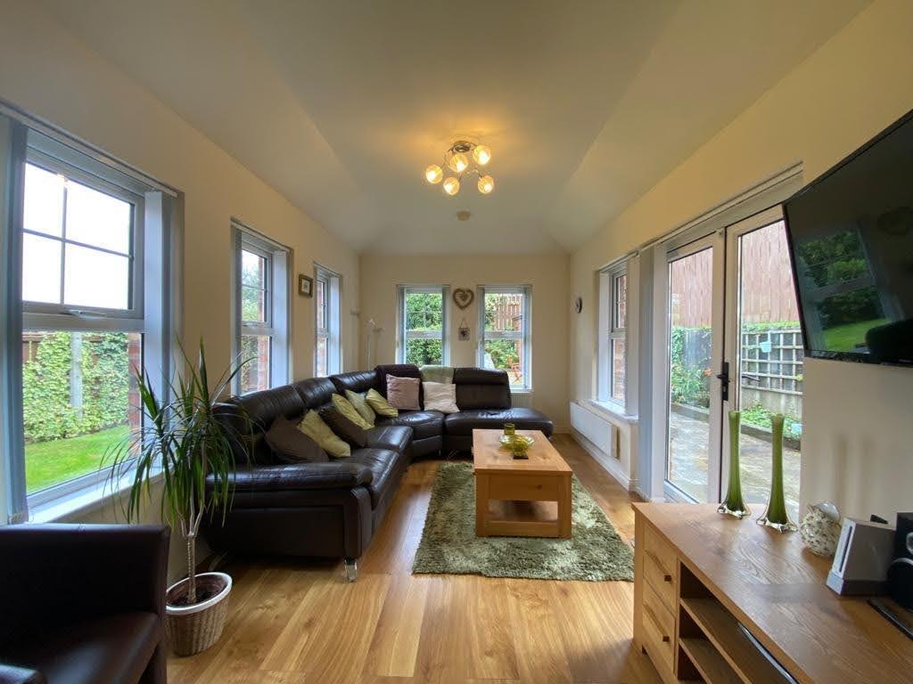 Having attractive fireplace with multi fuel stove, laminated wooden floor.