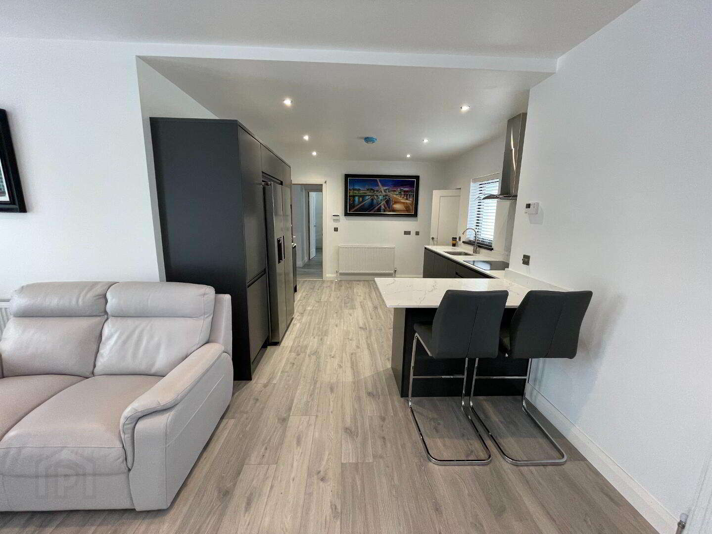The bungalow offers well-presented accommodation finished to a modern standard, comprising three bedrooms, a stylish bathroom, and a spacious open-plan kitchen, living and dining area, together with a separate utility room. The property benefits from triple glazing, modern flooring throughout, and a high-quality internal finish.