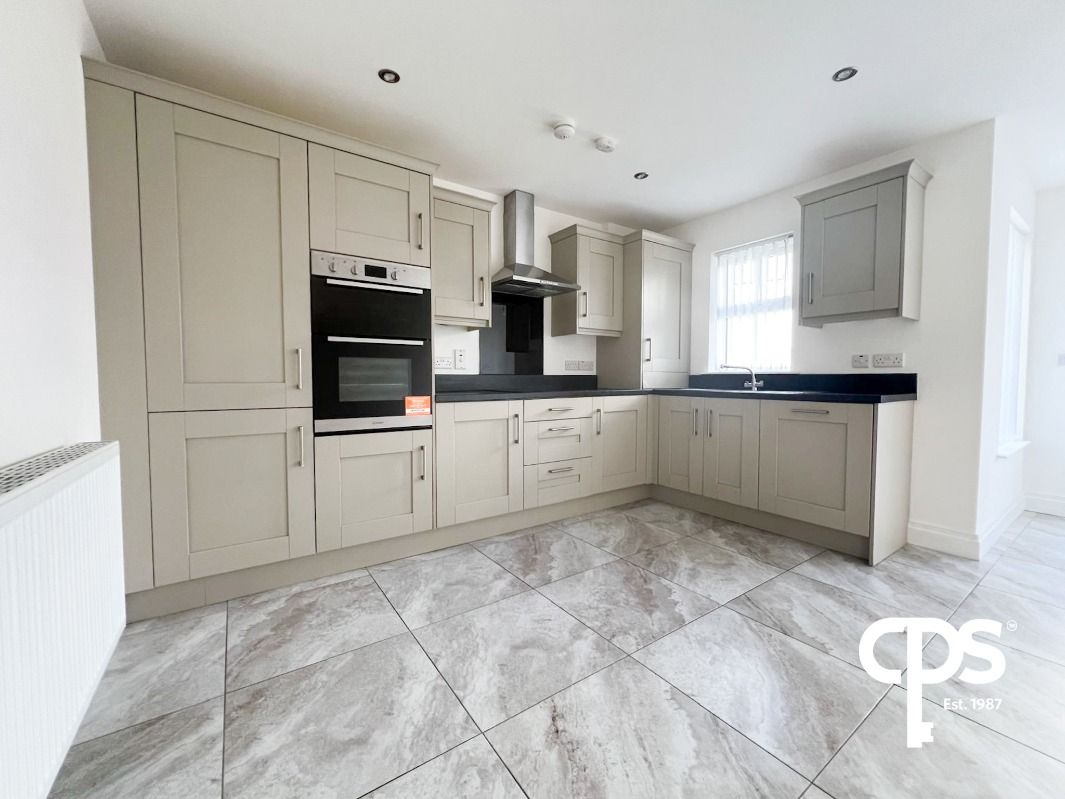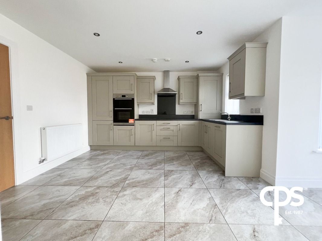 Kitchen/Dining - 5.4m x 4.9 m tiled floor, attractive range of high and low level units, double integrated oven and grill, 4 ring hob, stainless steel extractor fan over, integrated dishwasher, 1 and 1/2 bowl stainless steel sink unit with mixer tap, downlighters, tiled floor, back door leading to enclosed rear garden and patio area