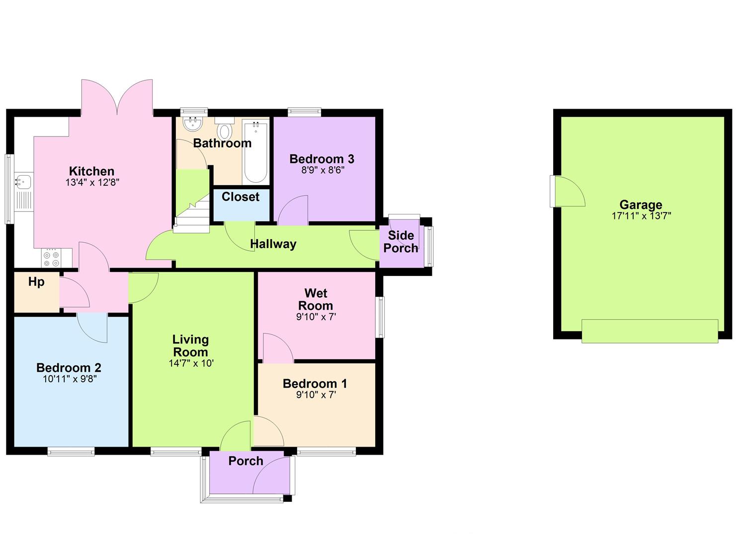 This bungalow comprises living room with electric fire, kitchen and dining area, shower room, bathroom, three bedrooms. Externally, the property boasts a tarmac driveway with ample parking, easily maintained gardens to the front and to the rear, a paved entertaining area and detached garage.