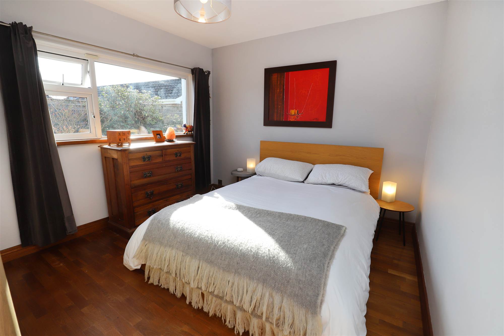 Solid wood floor, double panel radiator.