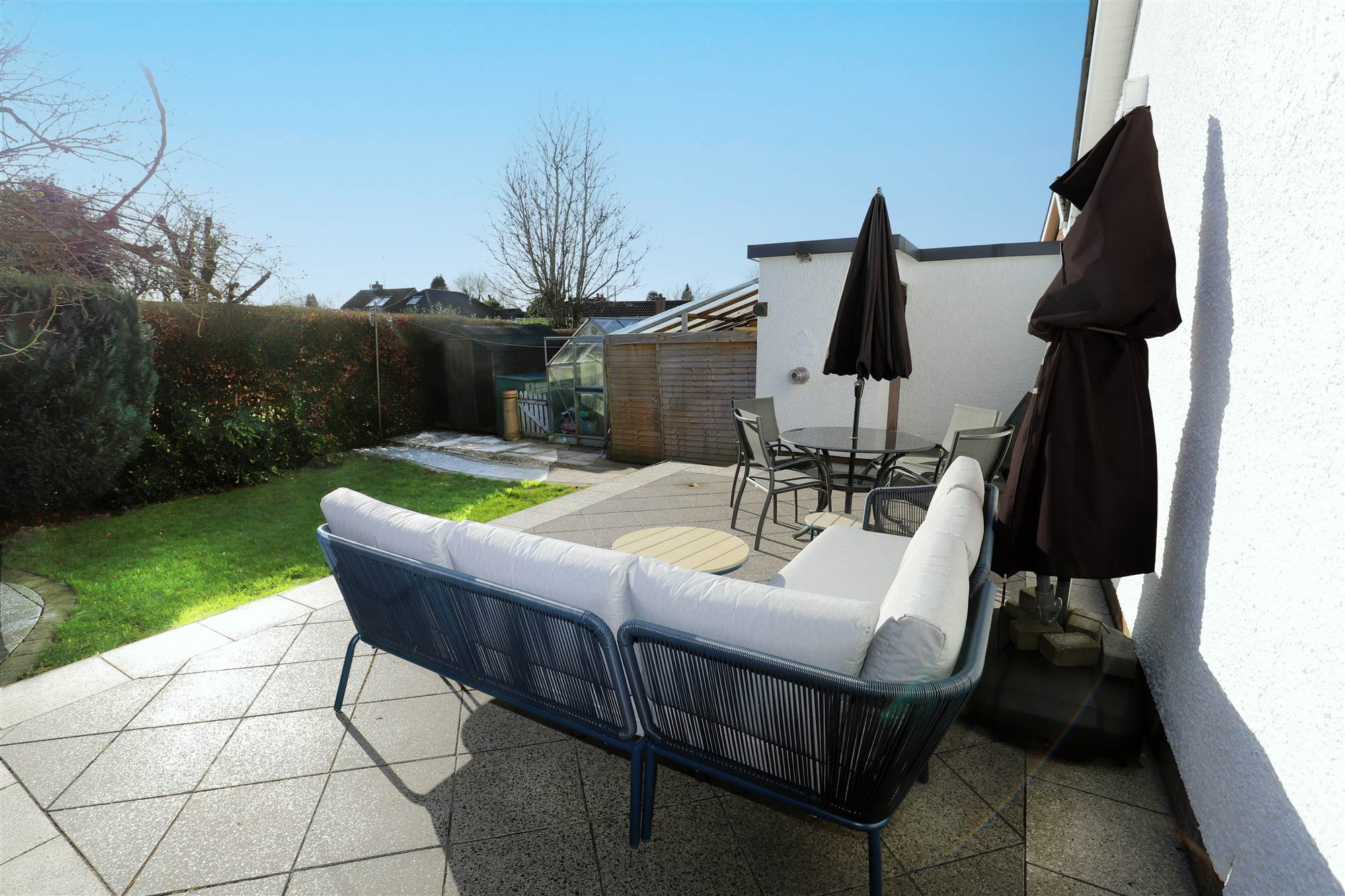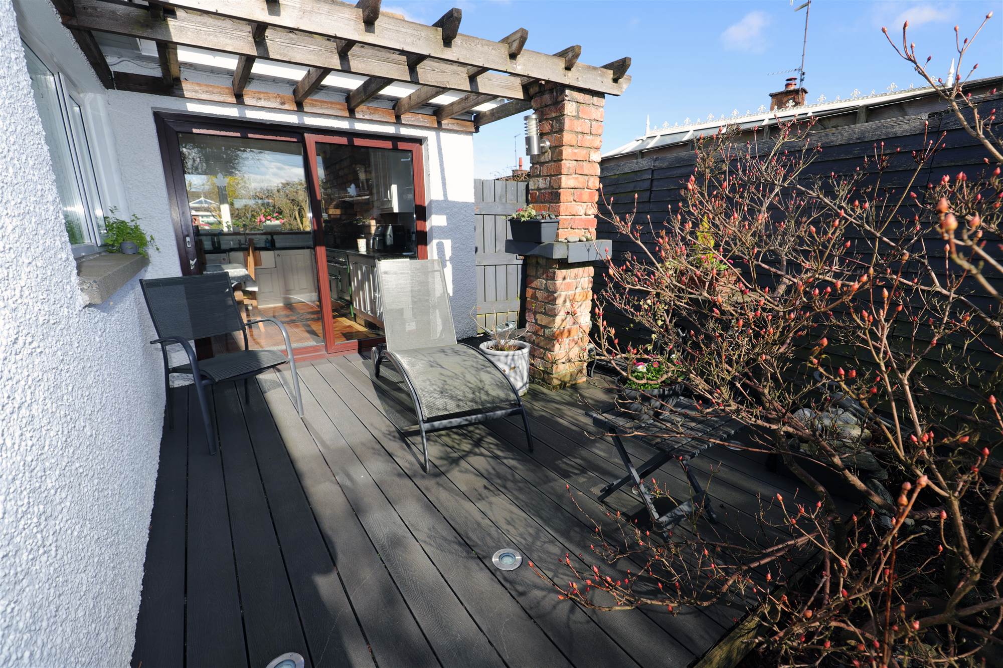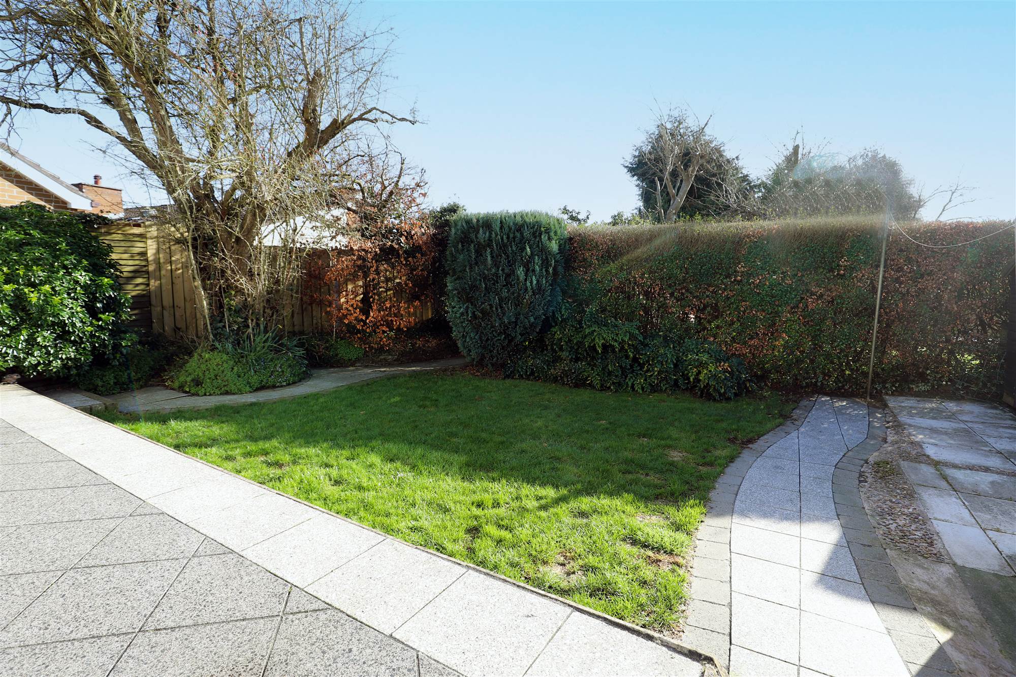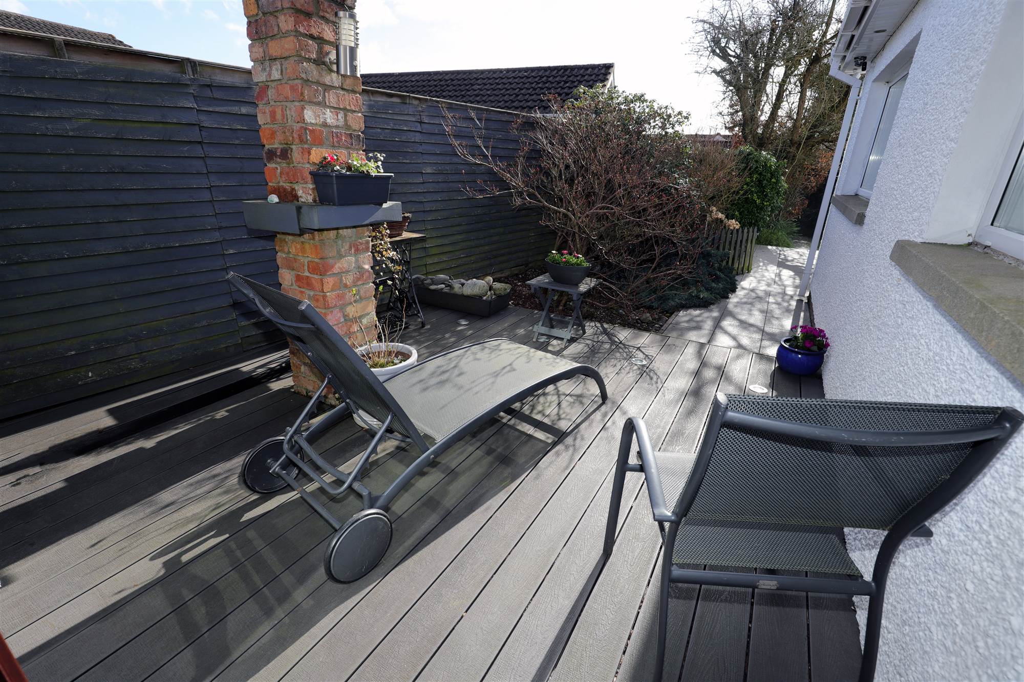 South facing, private rear garden with raised patio