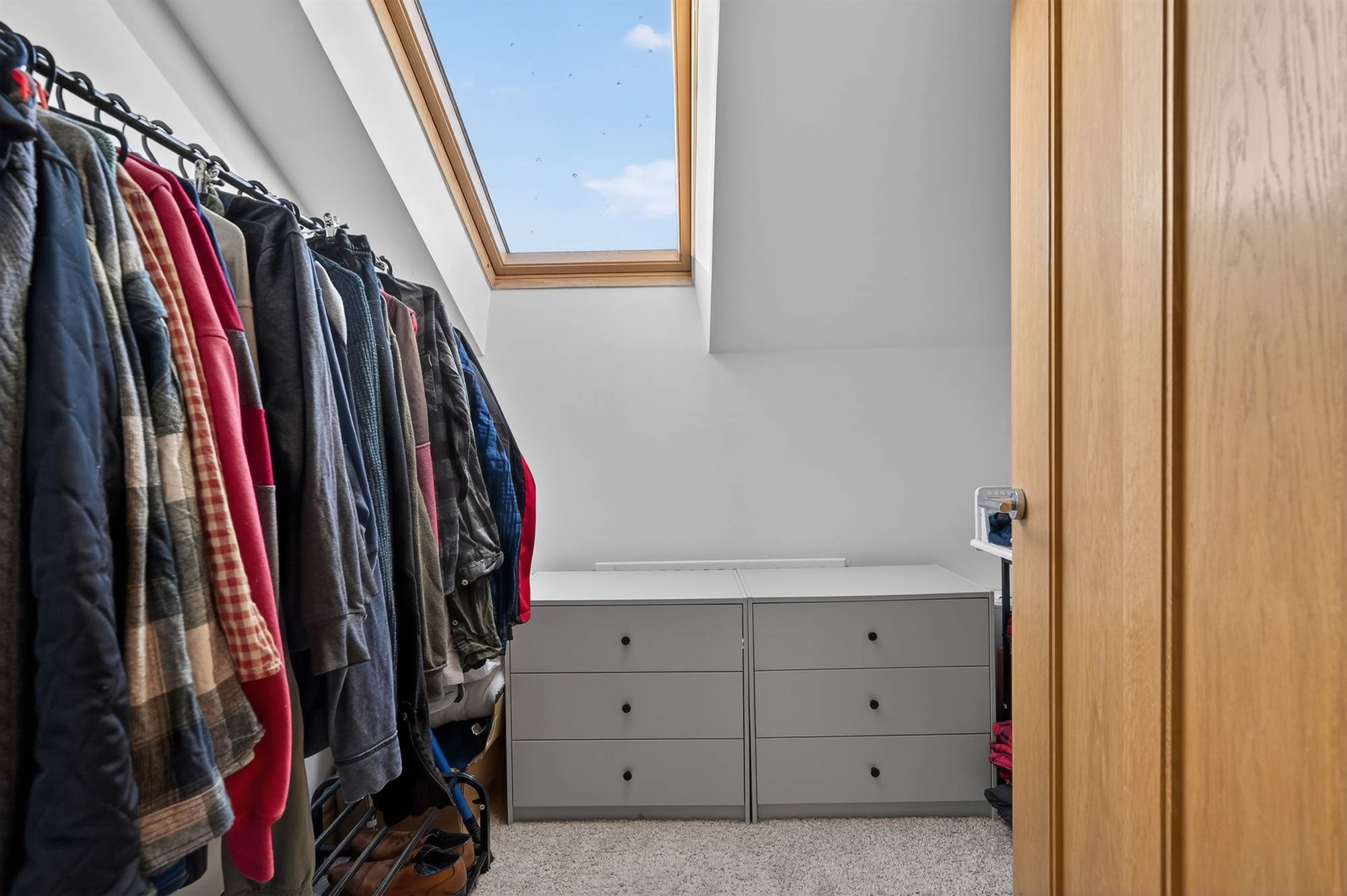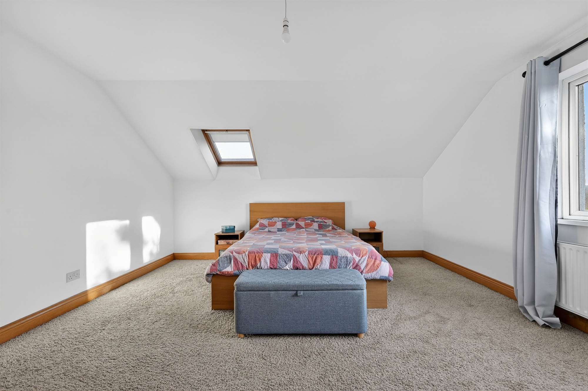 Door to walk-in roofspace storage. Walk-in hotpress with pressurised tank.