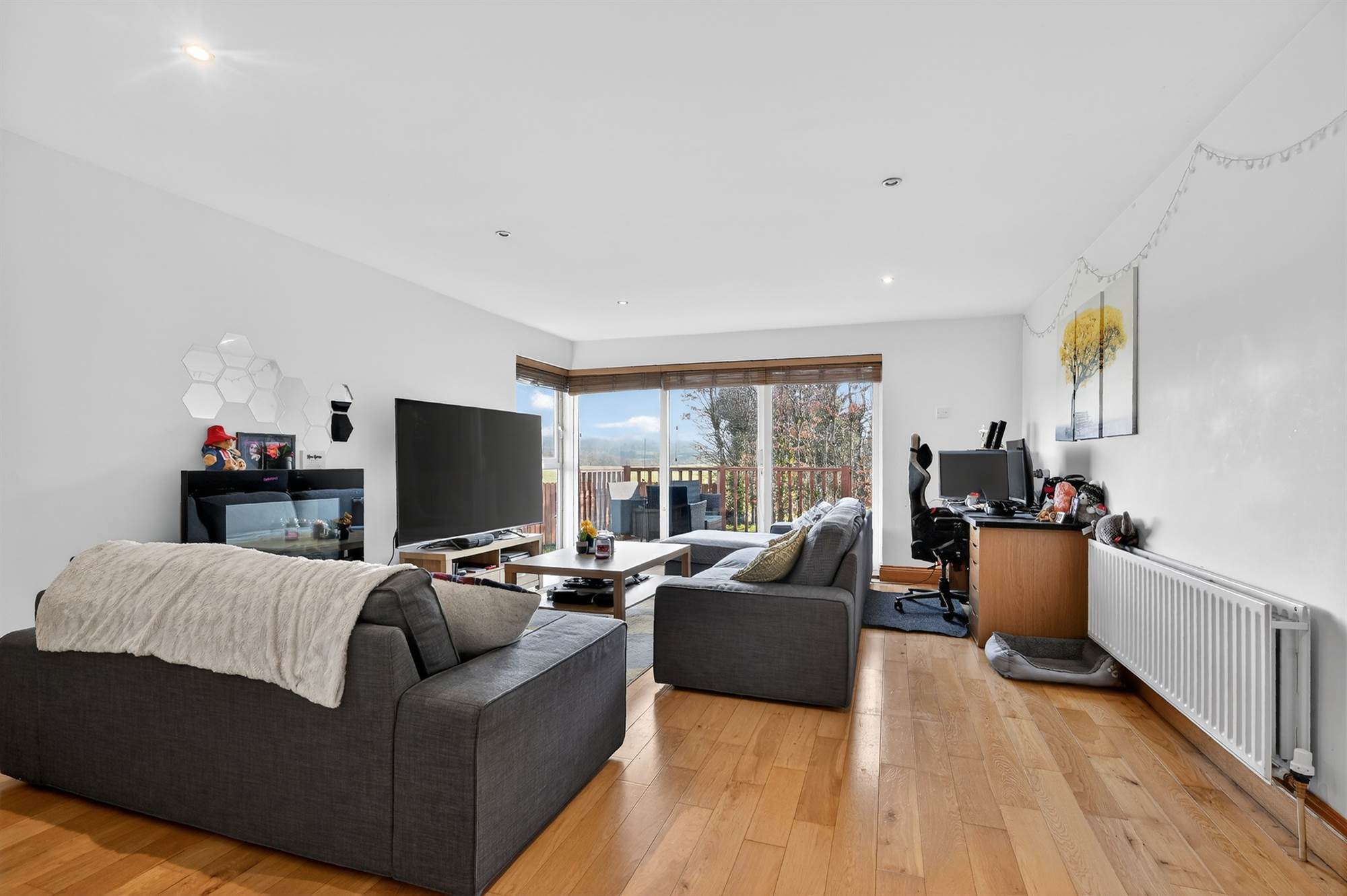 Oak wooden floor, recessed low voltage Spot lights, inset electric fire, feature floor to ceiling corner window and sliding door to decking.