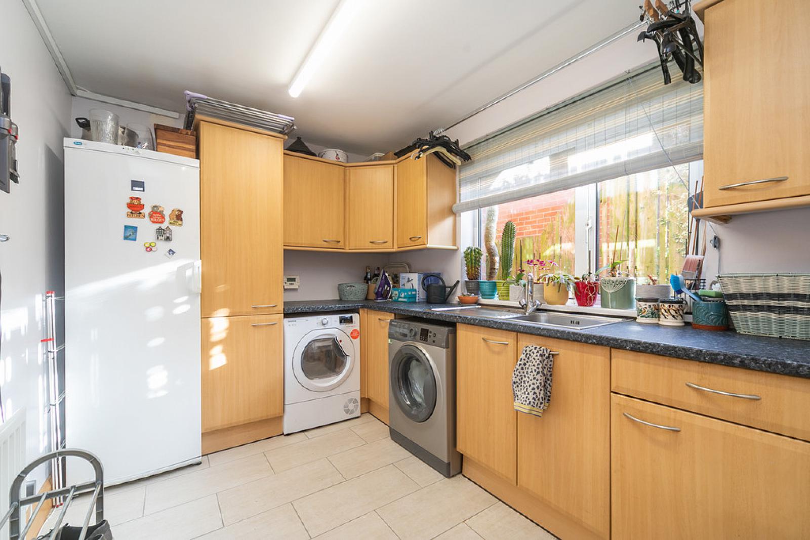 UTILITY ROOM 10' 1" x 6' 11" (3.07m x 2.11m) Range of high and low level units, work surfaces, single drainer stainless steel sink unit with mixer tap, plumbed for washing machine, tiled floor.
