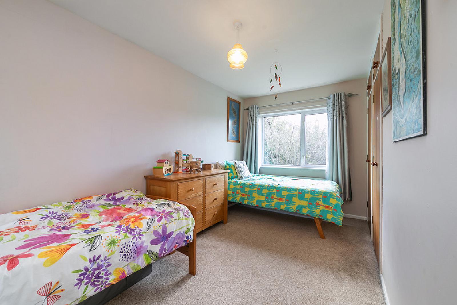 OUTSIDE Quiet cul-de-sac location, front garden in loose stones with mature planting and boundary wall, paviour driveway with parking for several cars leading to attached garage. Superb private and enclosed rear garden with South Westerly aspect in generous lawns with boundary fencing and mature planting, spacious sheltered paviour sitting area, oil tank.
