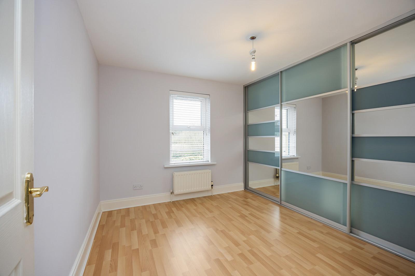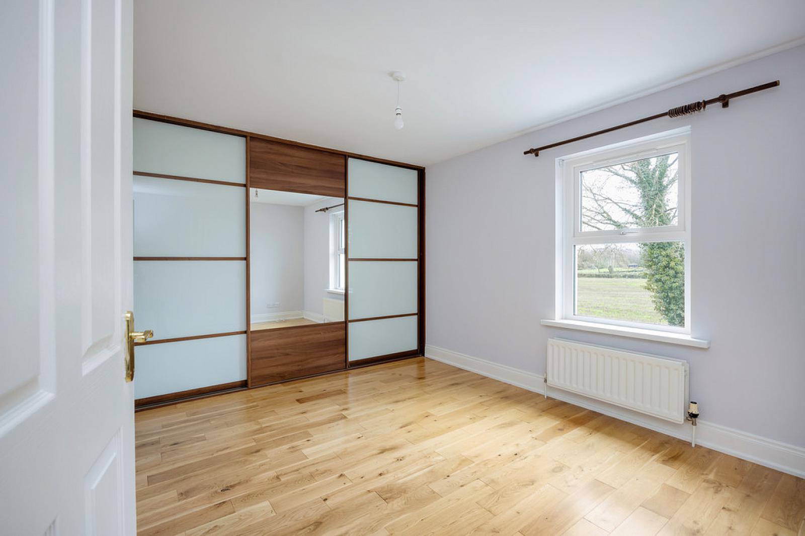BEDROOM 12' 10" x 10' (3.91m x 3.05m) Wood flooring, wall to wall range of built in robes and storage.