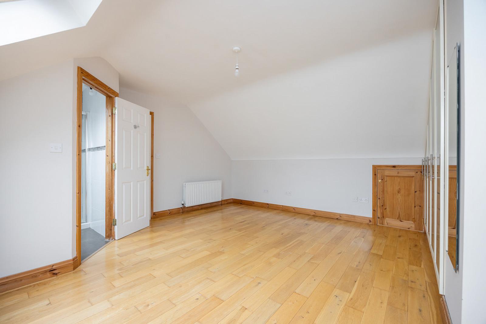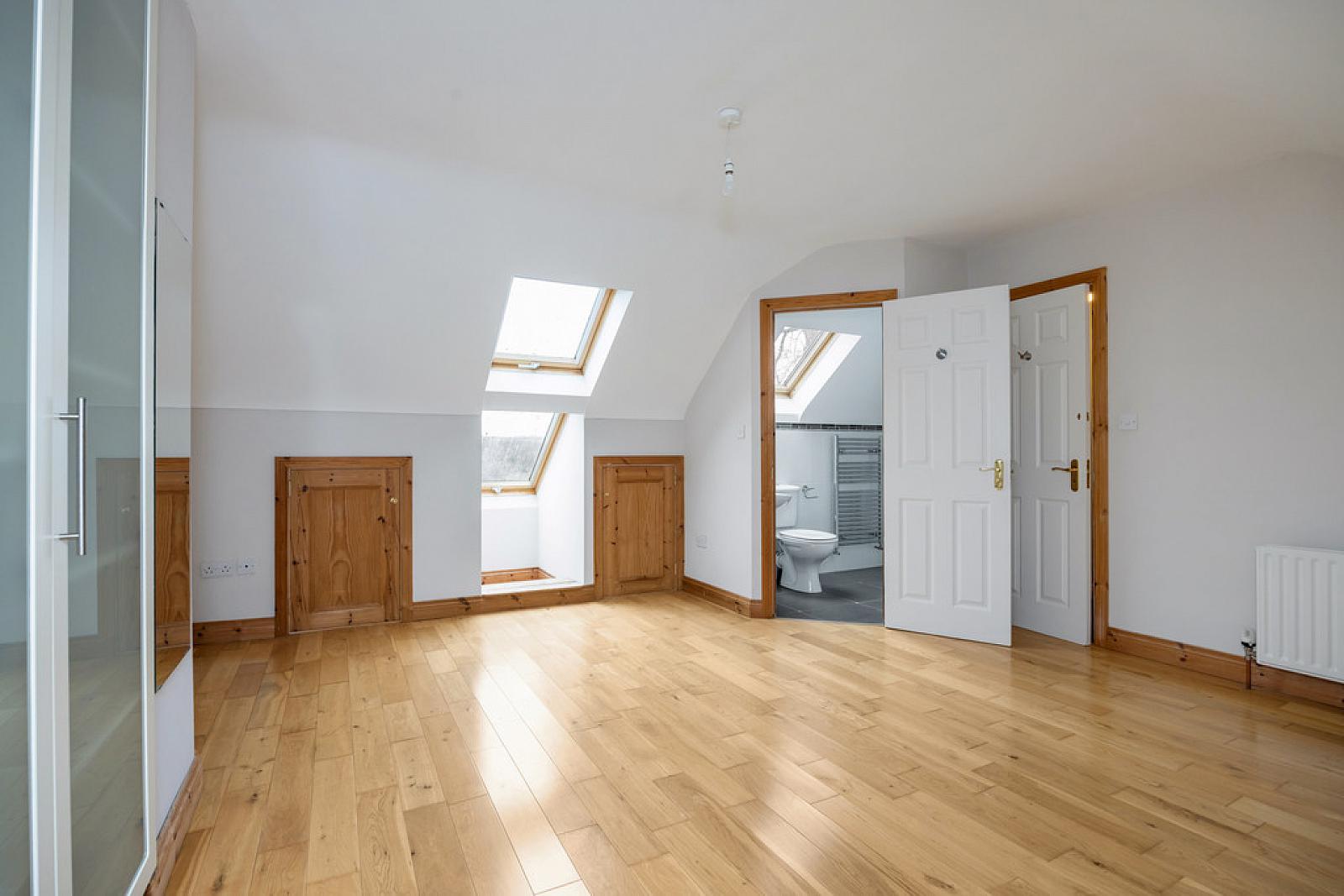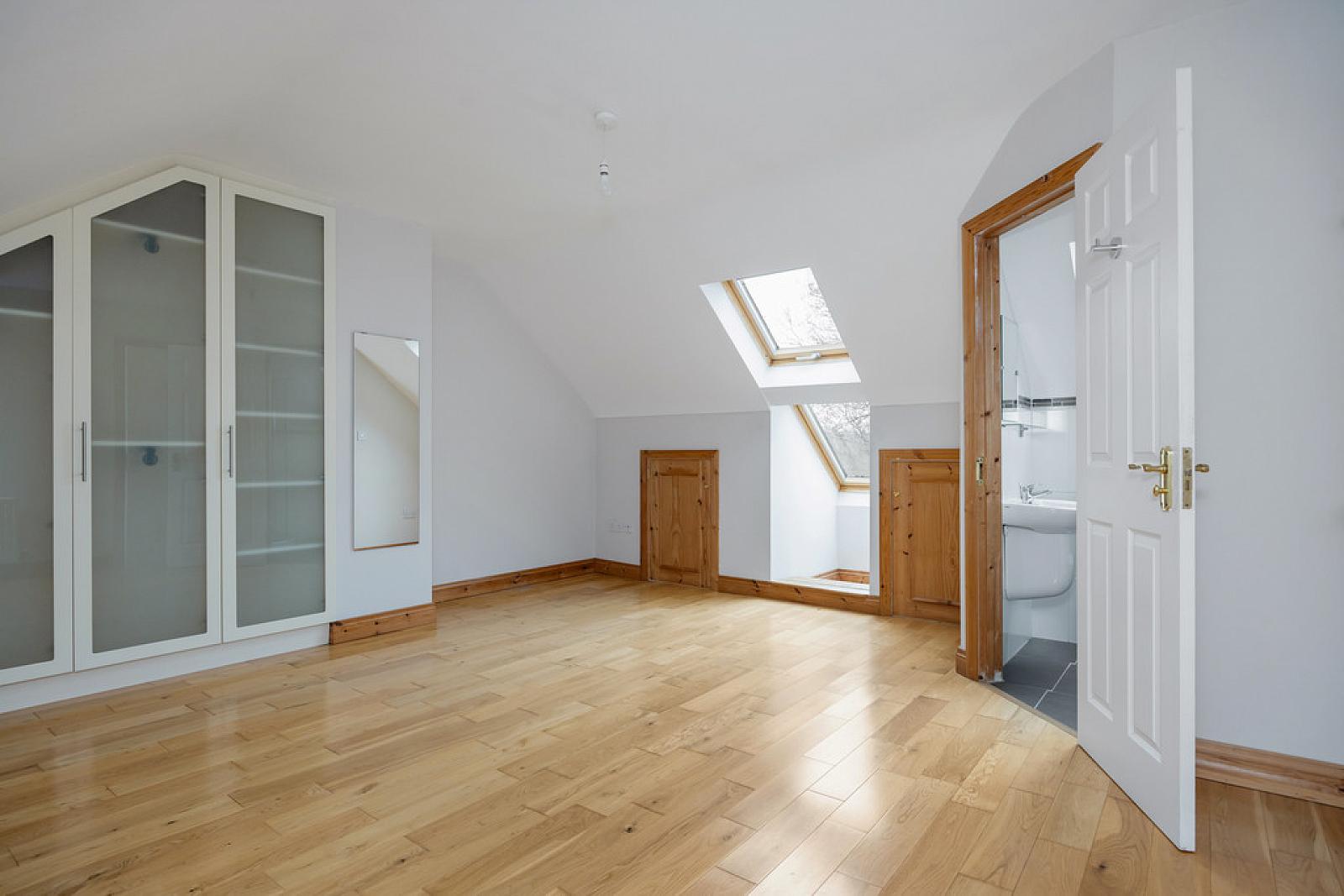 BEDROOM 10' 7" x 14' 11" (3.24m x 4.57m) (@ widest points) Wood flooring, storage in eaves, built in robes and storage, Velux window.