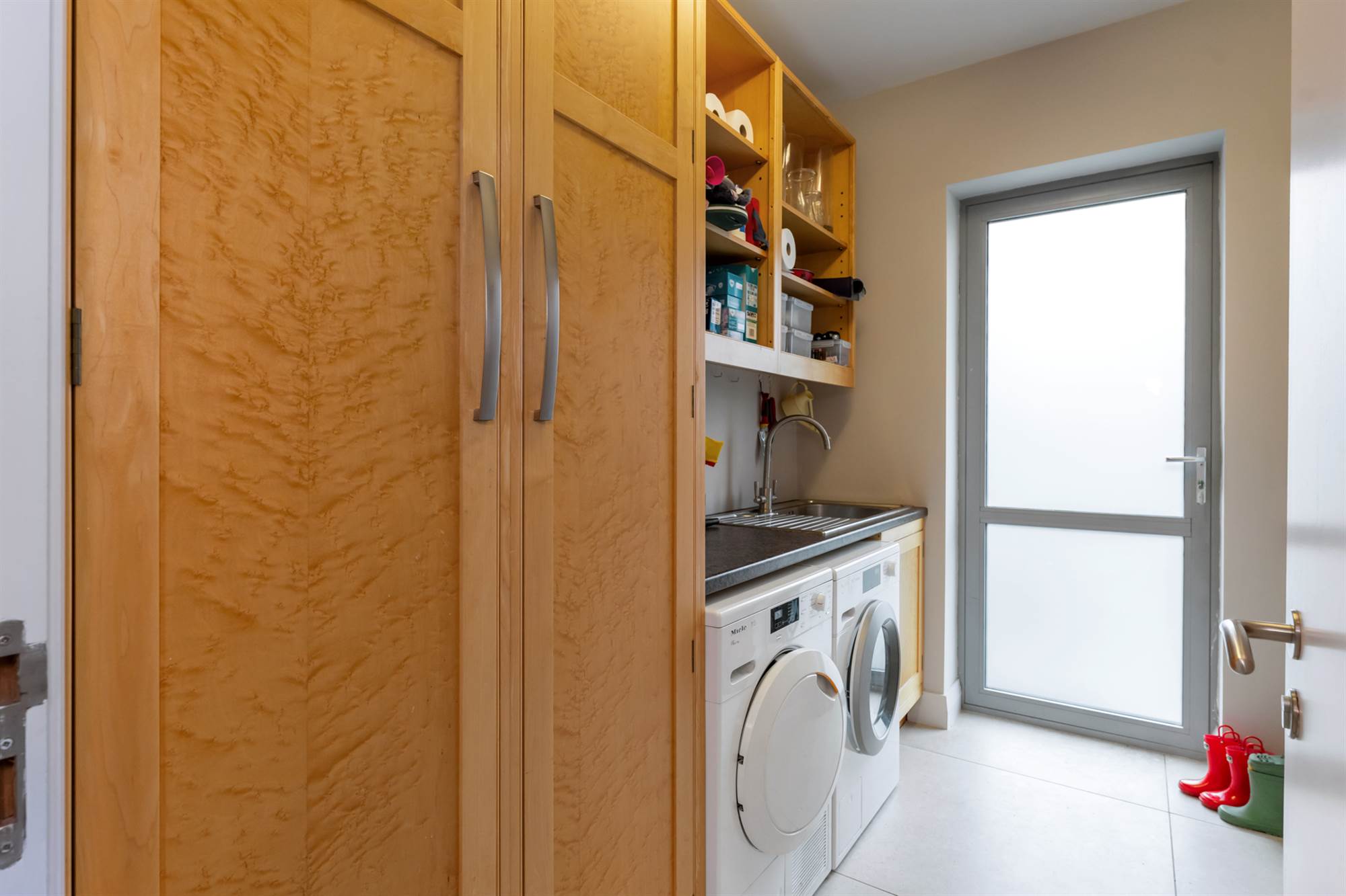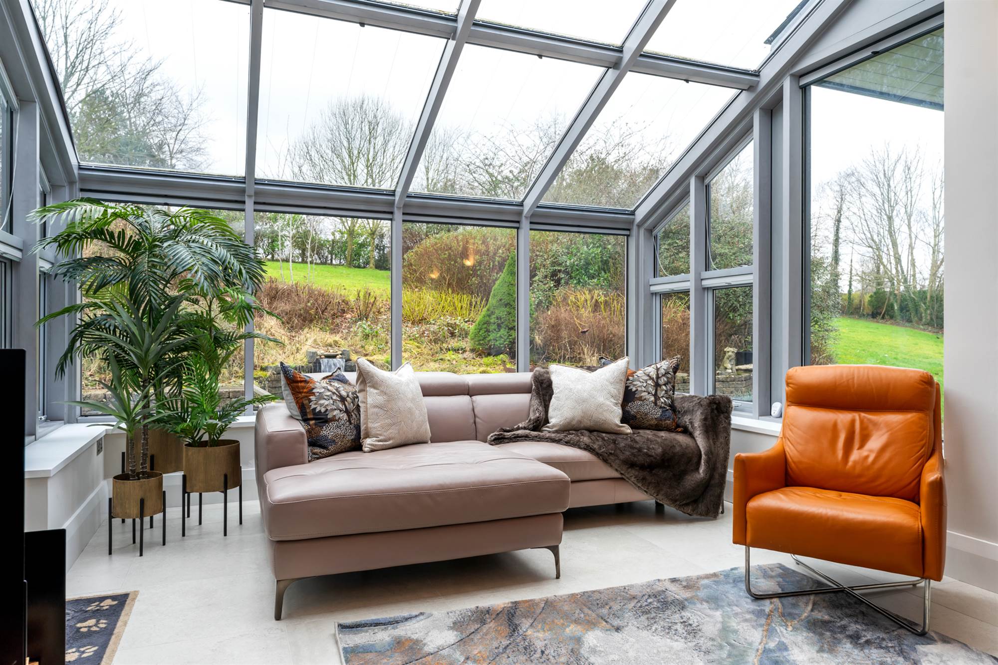 Porcelain tiled flooring, cast iron wood burning stove, glazed door to paved patio. Sun room with fitted blinds.