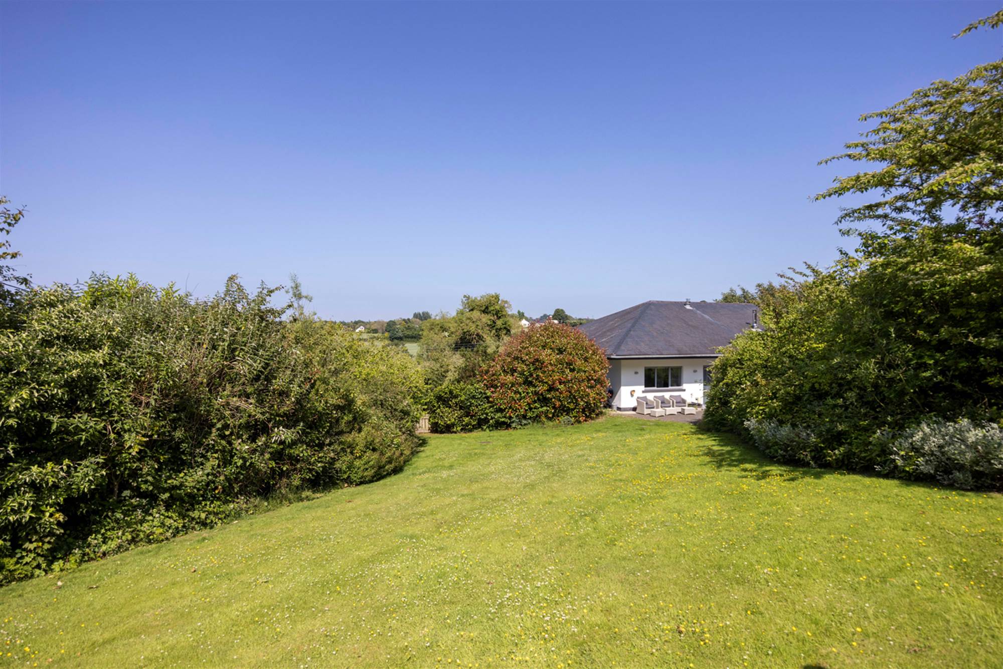 Electric wrought iron entrance gates, tarmac driveway and parking areas. Magnificent site of approximately 0.9 acre with views of surrounding countryside, landscaped gardens front and side and elevated to rear in lawns, flowerbeds, shrubs and variety of specimen trees. Paved patio and barbecue area.