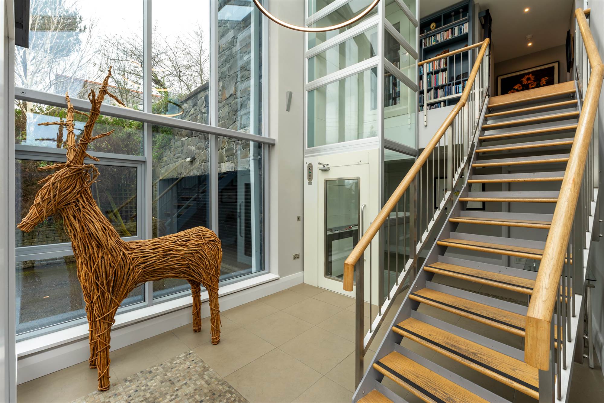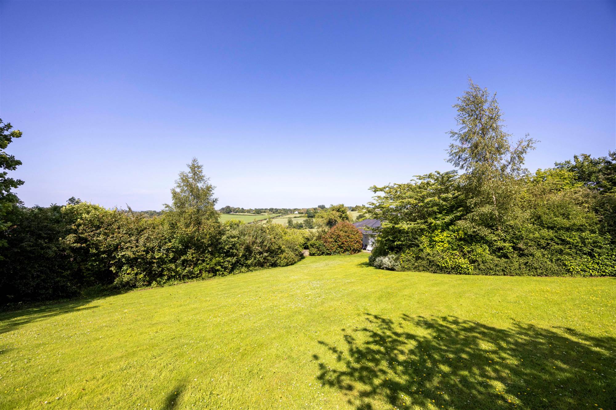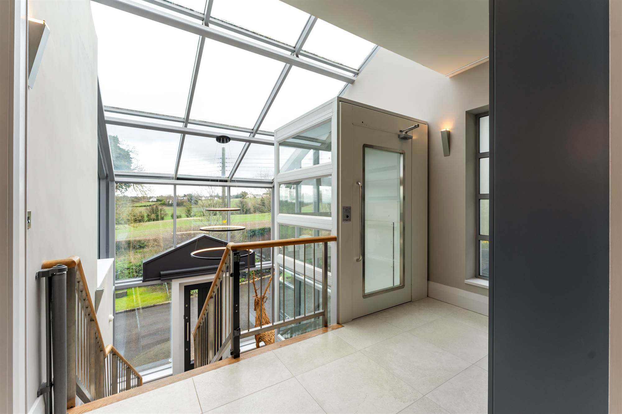 This truly outstanding detached residence was designed and project managed by David Turkington of Turkington Magowan Architects, and enjoys that rare combination of a beautifully appointed modern home in a mature rural setting with views from every aspect over the surrounding countryside. Stone has been sourced from a quarry less than two miles away and from the exterior the building is quite breathtaking together with the stunning and overwhelming use of glass. Entering the property via its powerful entrance, there is little or no clue as to what lies above you as you climb the staircase or use the glass elevator. The luxury accommodation and master bedroom are all situated on the first floor to have full advantage of the views and with the split level garden design, the terrace and patio area can all be accessed from there. The location is close to both Lisburn, Belfast, primary and secondary schools and Malone, Dunmurry and Belvoir Golf Clubs. For those seeking a distinctive family home in a popular and sought after location, this must be a rare opportunity and one not to be missed.