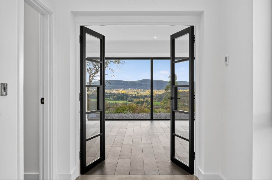 Uninterrupted views across Lagan Valley to Antrim Hills. Glazed double doors to . . .
