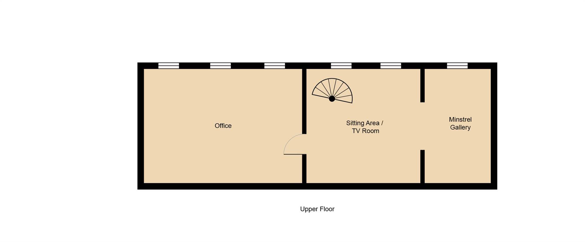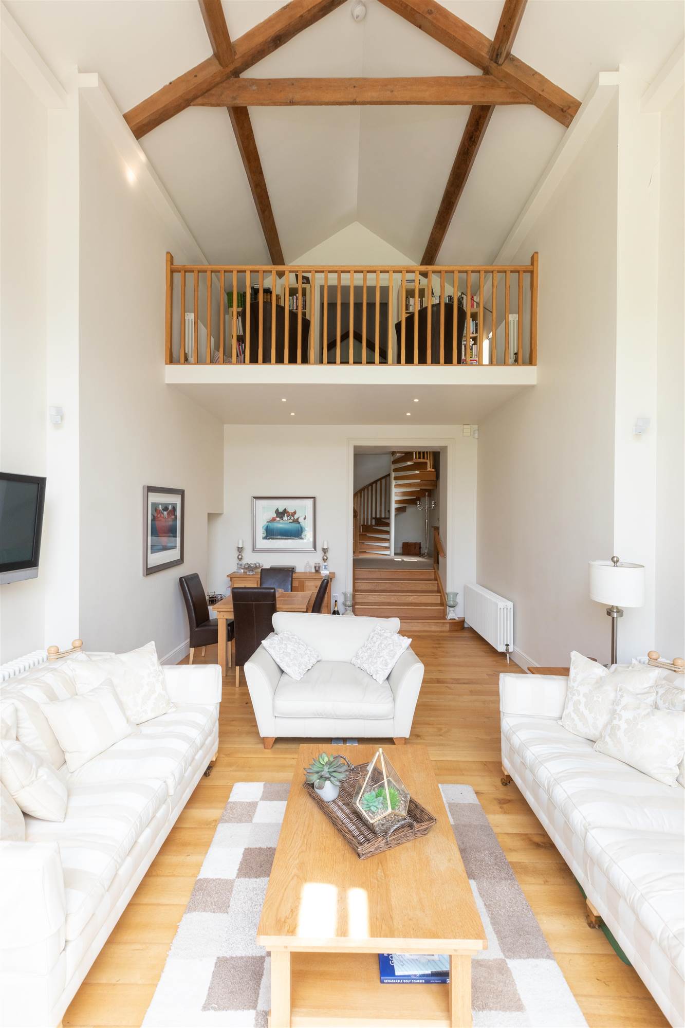 Overlooking the Ground Floor Garden Room a spiral staircase leads to a Sitting/Library Area and First Floor Office.