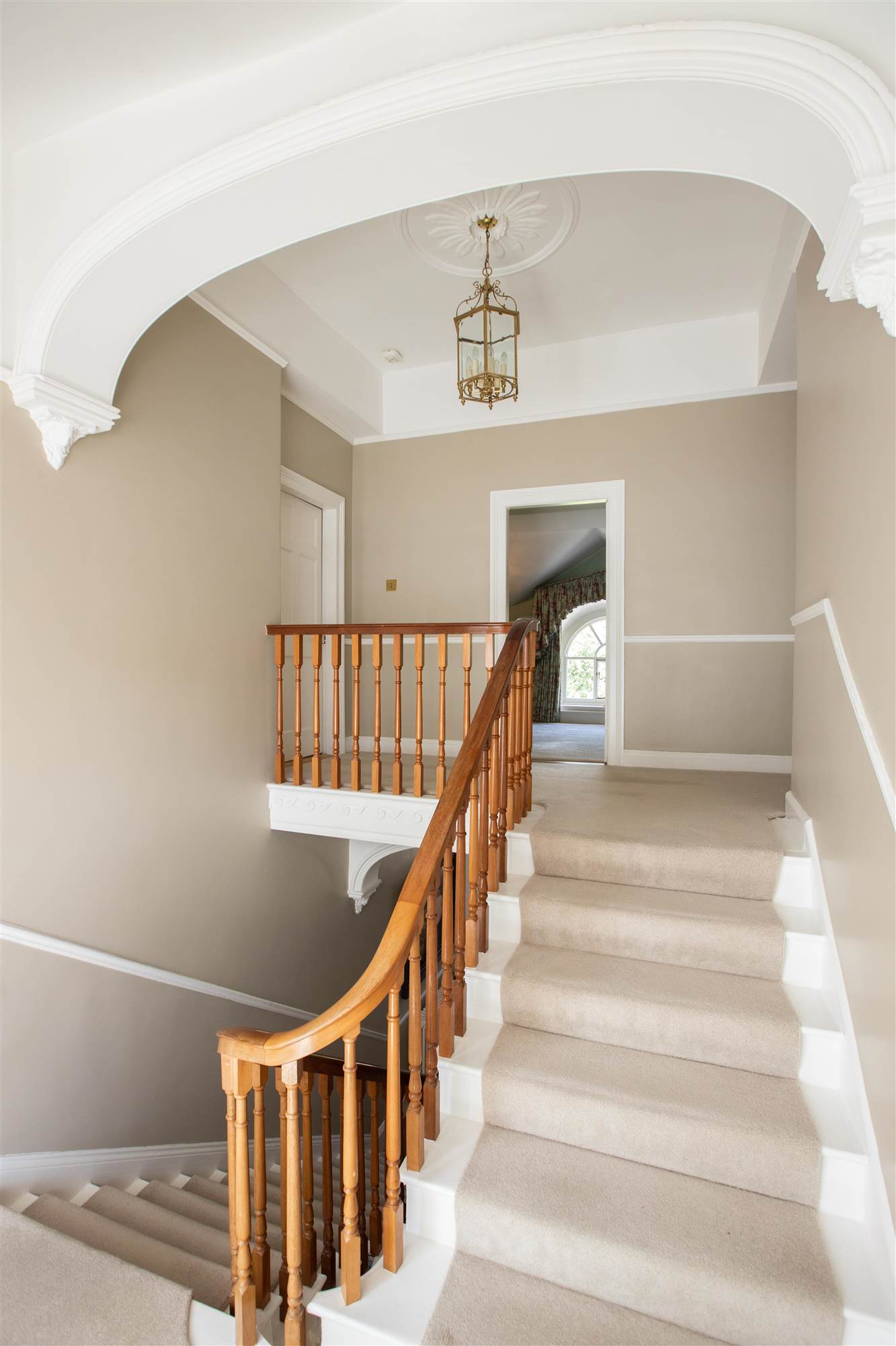 Half landing with Oriel bay window overlooking inner courtyard. Shelved airing cupboard.