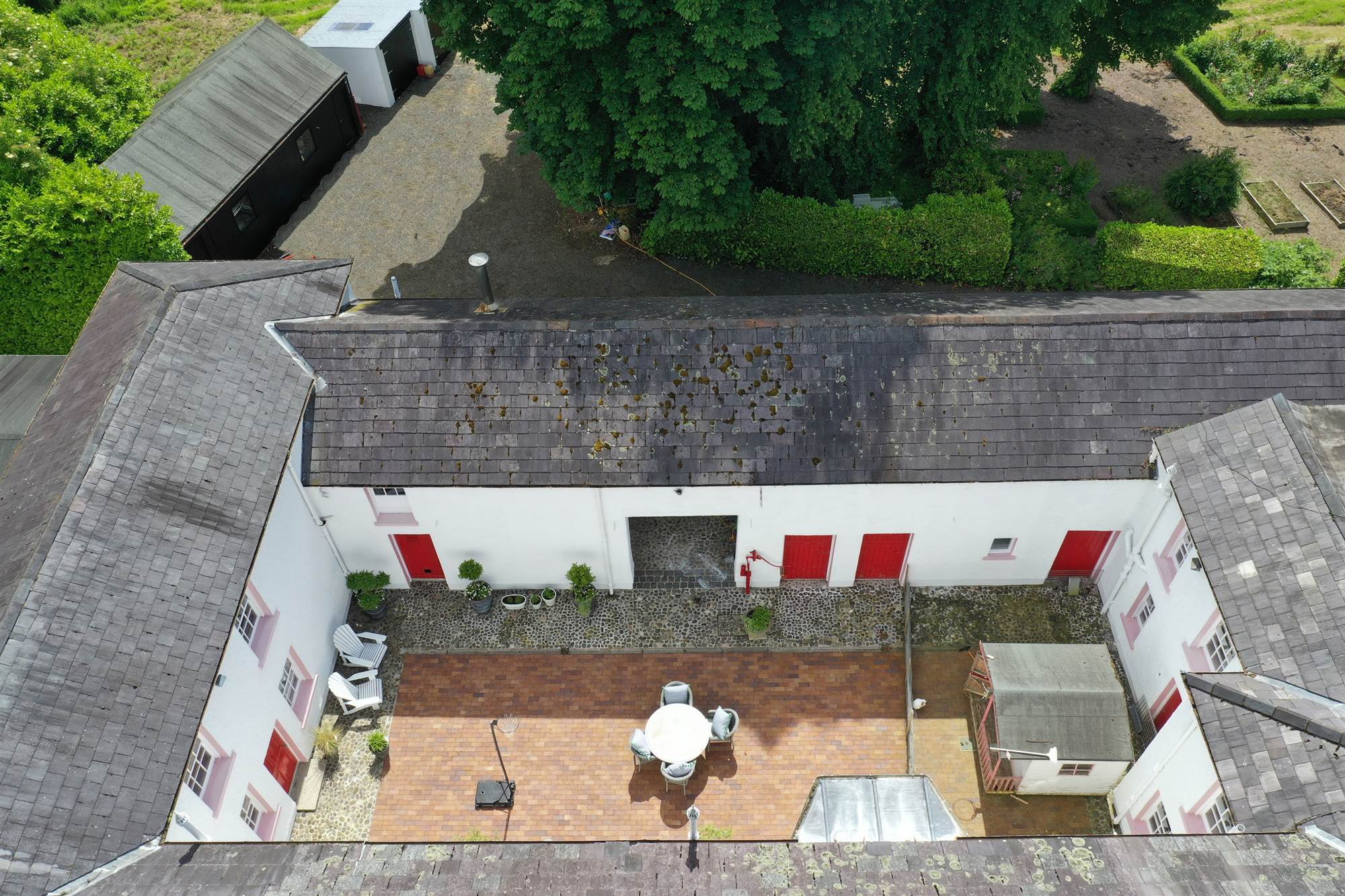 Inner Cobbled Courtyard: Gym, Store, And Double Garage