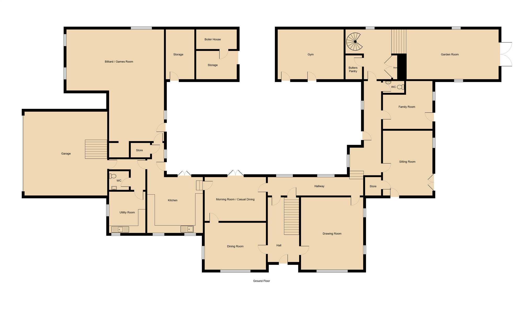 On the ground floor there is also an impressive Games/Billiards Room, Butler"s Pantry and wine cellar.