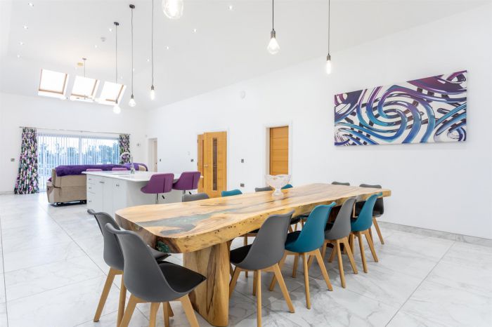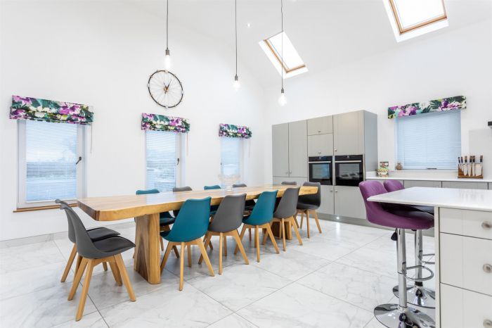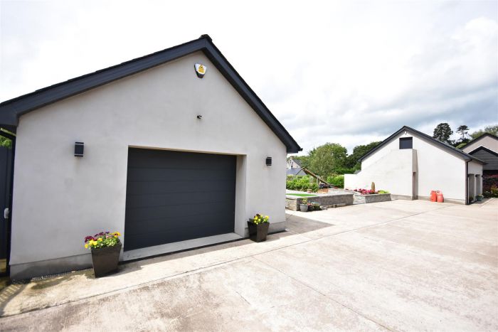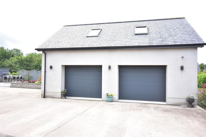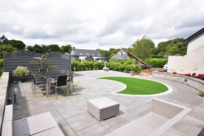 Finished to an exceptional standard both inside and out, this beautiful family home benefits from a stunning kitchen with informal living and dining area (39'8 x 19'3) boasting double height ceilings, contemporary style light grey coloured high and low level kitchen units with large centre island, integrated double ovens, hob, dishwasher and "Quooker" hot water tap together with a superb walk-in, fully shelved pantry with sliding "pocket" door. This light filled room benefits from seven "Keylite" double glazed roof lights, PVC triple glazed sliding patio doors and a feature cast iron stove and slate hearth in one corner. Extending to 3,500Sq.Ft. the property further boasts PVC triple glazed windows and external doors, oil-fired central heating with underfloor heating to the ground floor together with luxury ensuite shower rooms to every bedroom with the master bedroom also benefiting from a large ensuite bathroom complete with wetroom style shower and walk-in dressing room.