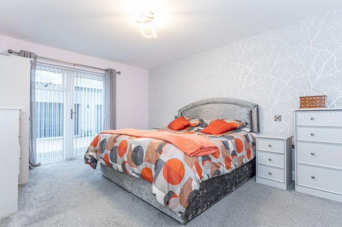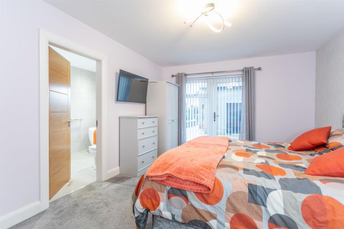 PVC triple glazed door and matching side light to rear. Wall mounted TV points.