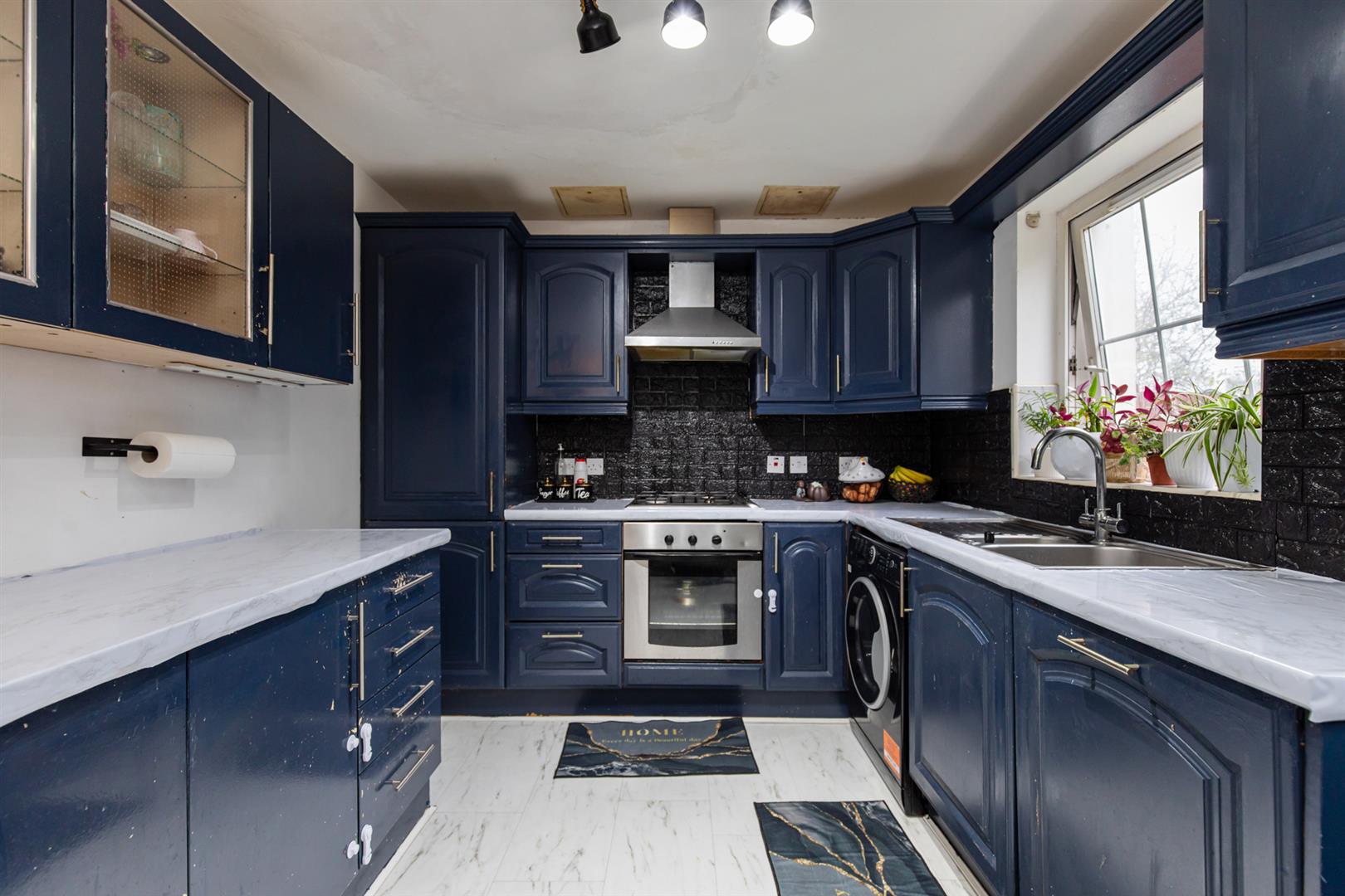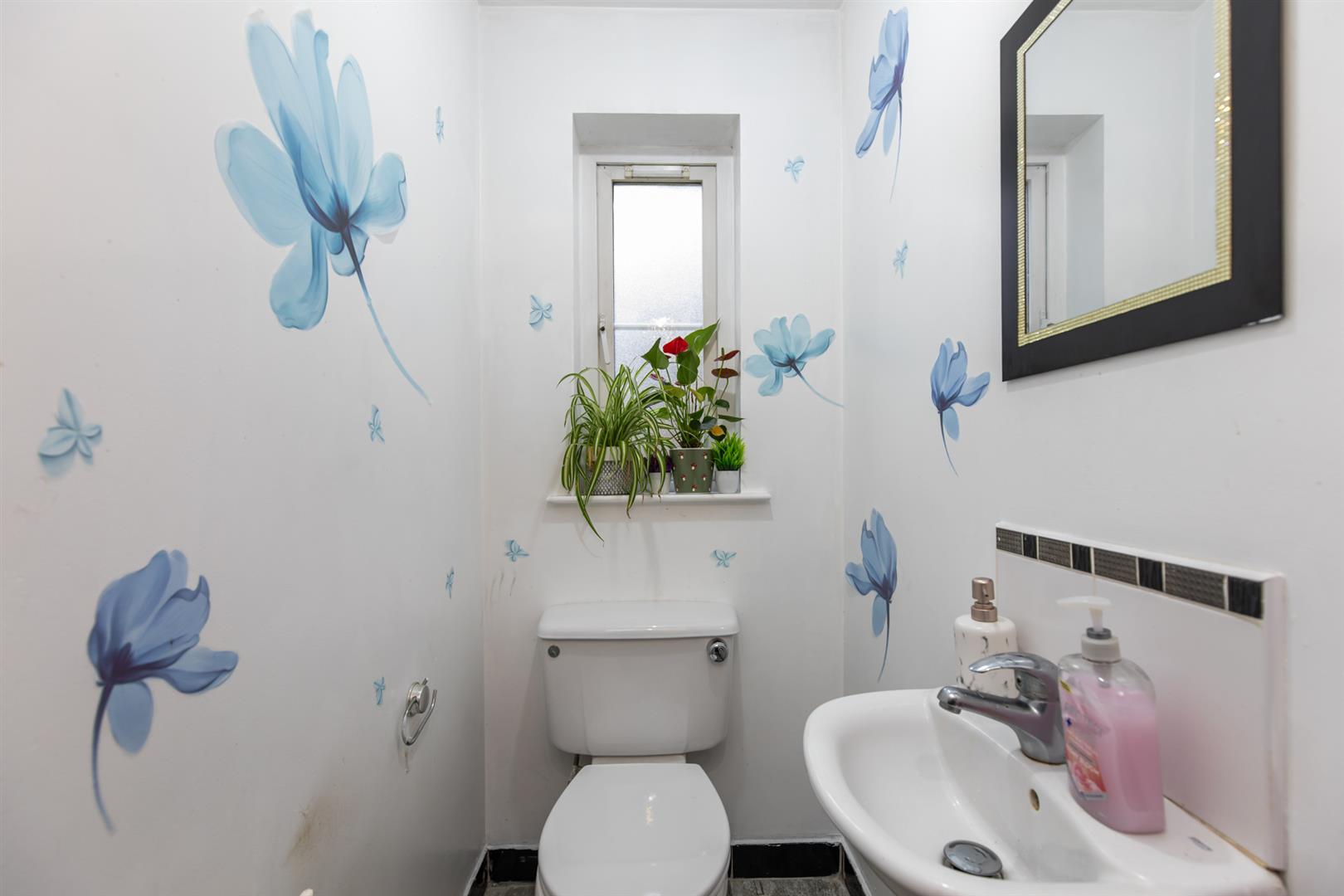 The kitchen is fitted with a range of units, integrated appliances, and ample work surfaces, with space and plumbing for additional appliances. A convenient ground floor WC completes the practical layout.