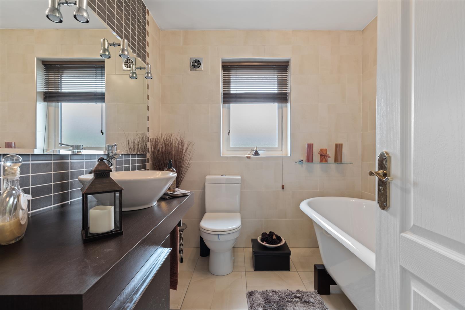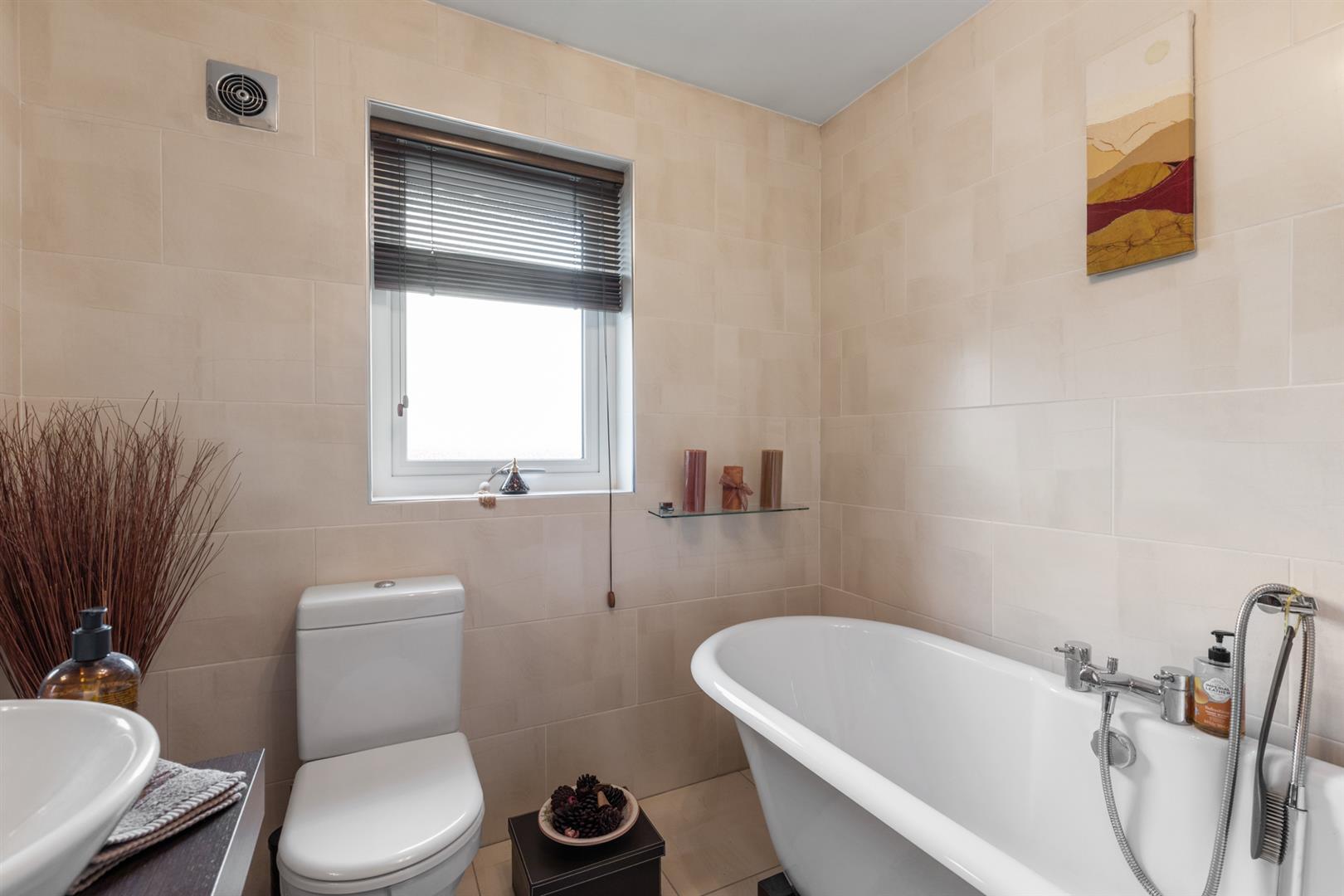 Upstairs, there are three well-proportioned bedrooms, including a main bedroom with built-in wardrobes and an ensuite shower room. A modern family bathroom with freestanding roll top bath and vanity unit completes the first floor.