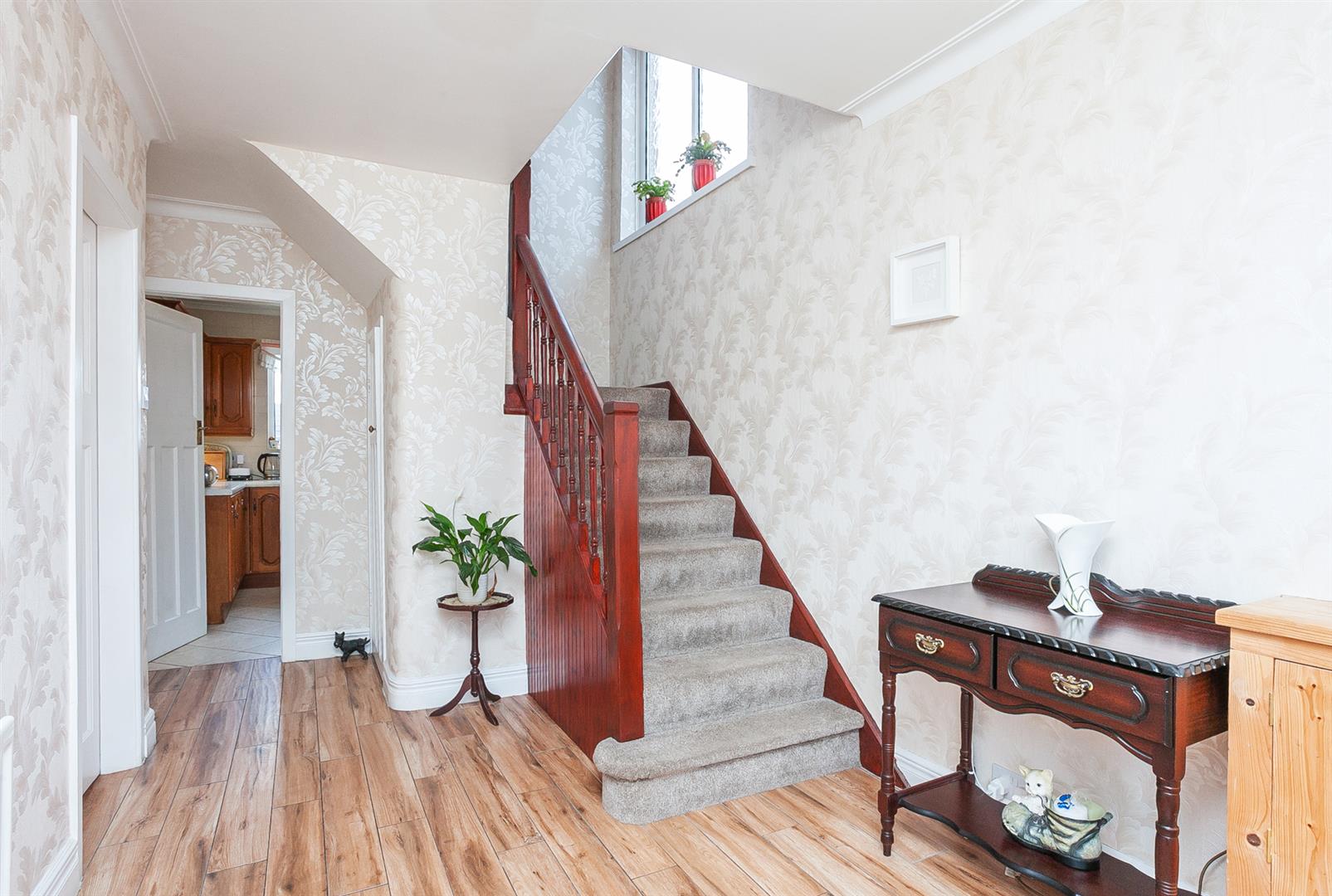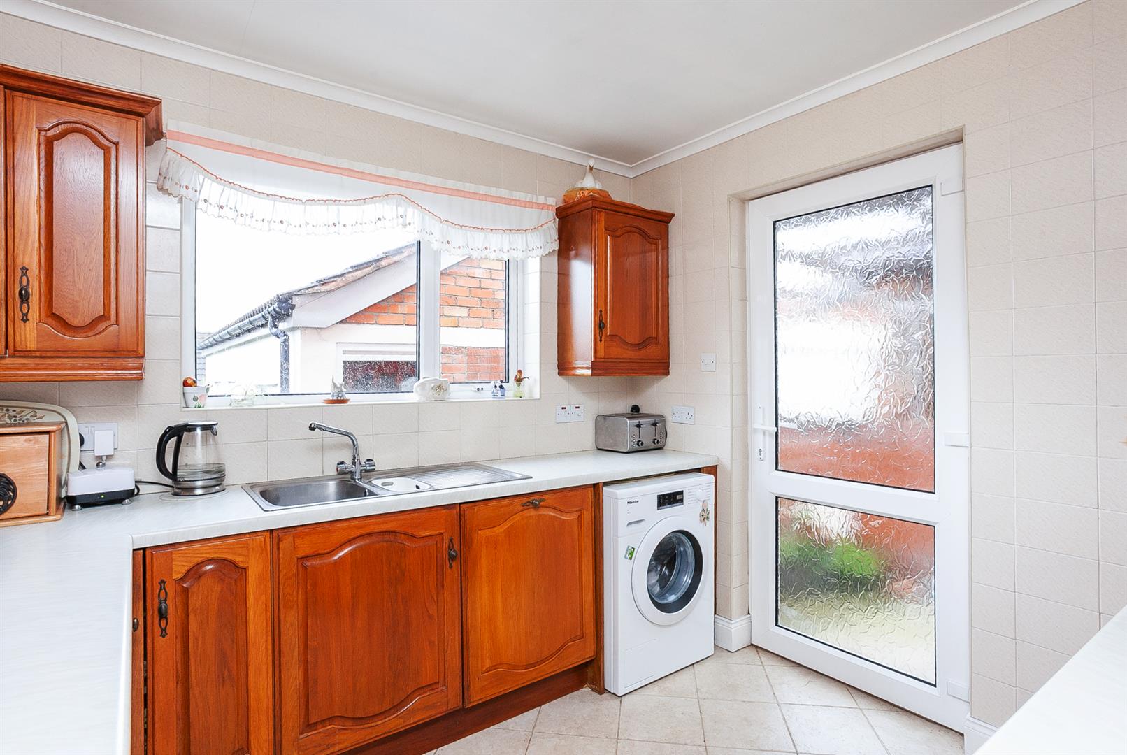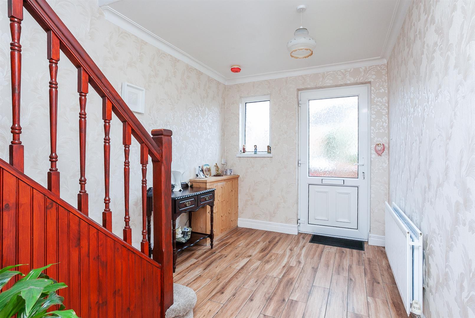 PVC front door and storage under stairs. Fully tiled flooring.