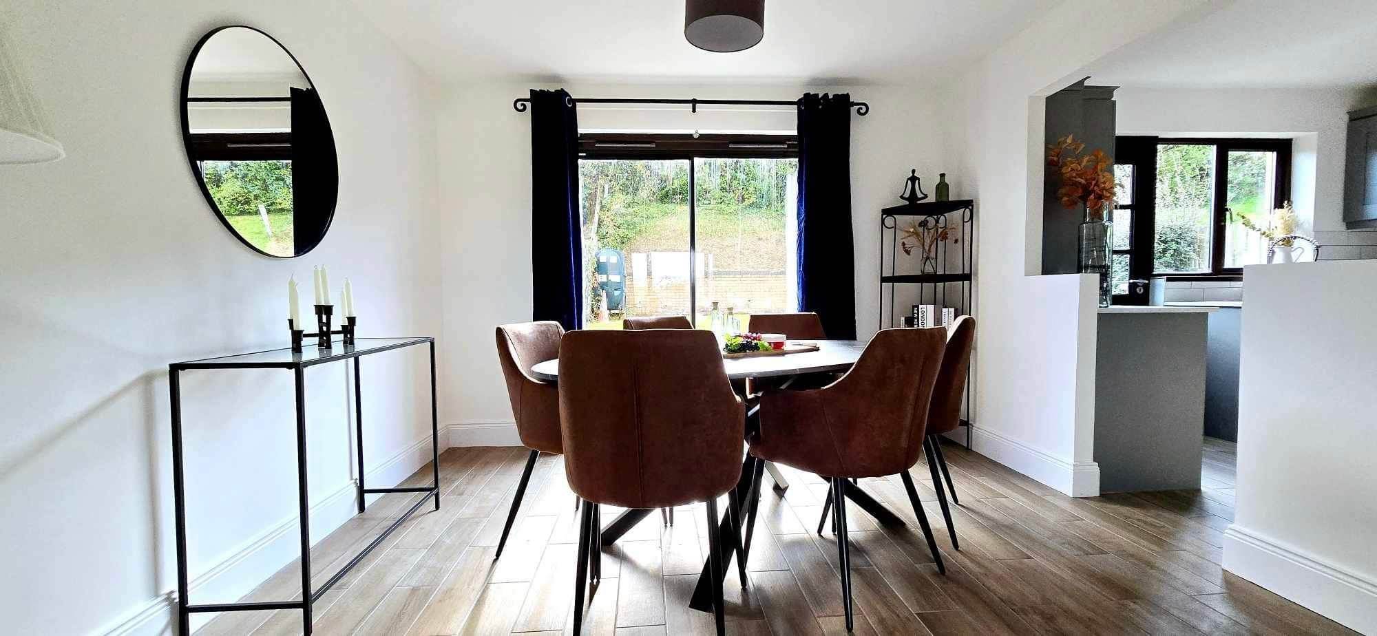 Ceramic tiled floor, double glazed sliding doors to rear. Folding door to Living Room.