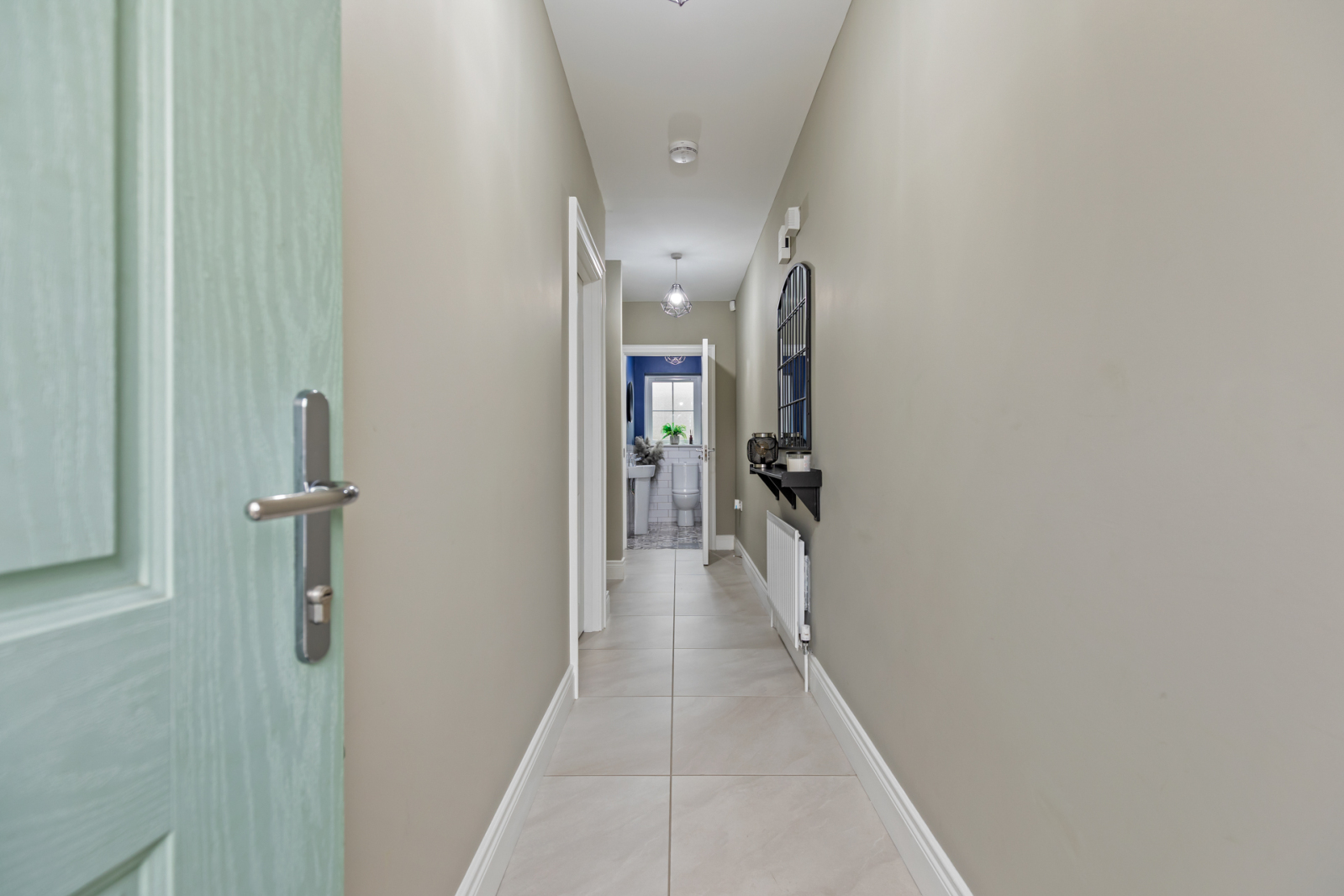 Composite front door with glass inset, leading through to reception hall.