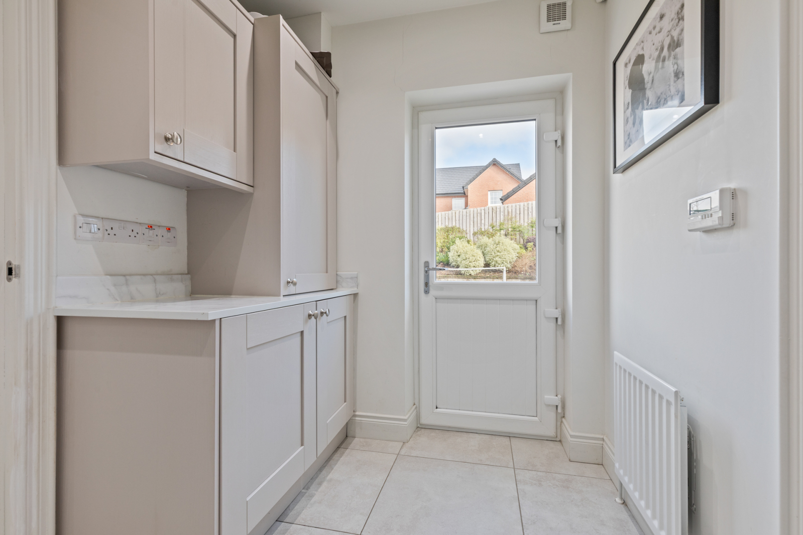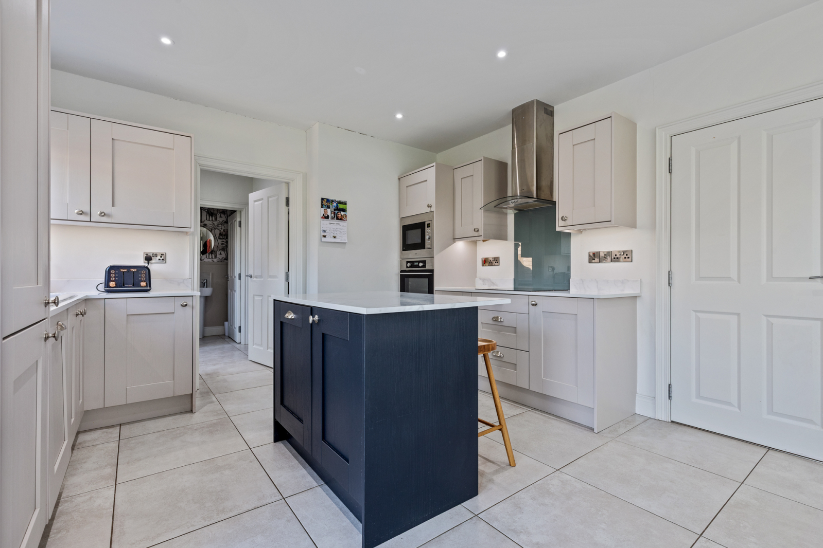 High and low level units, integrated washing machine, gas boiler, access to utility room and downstairs WC.