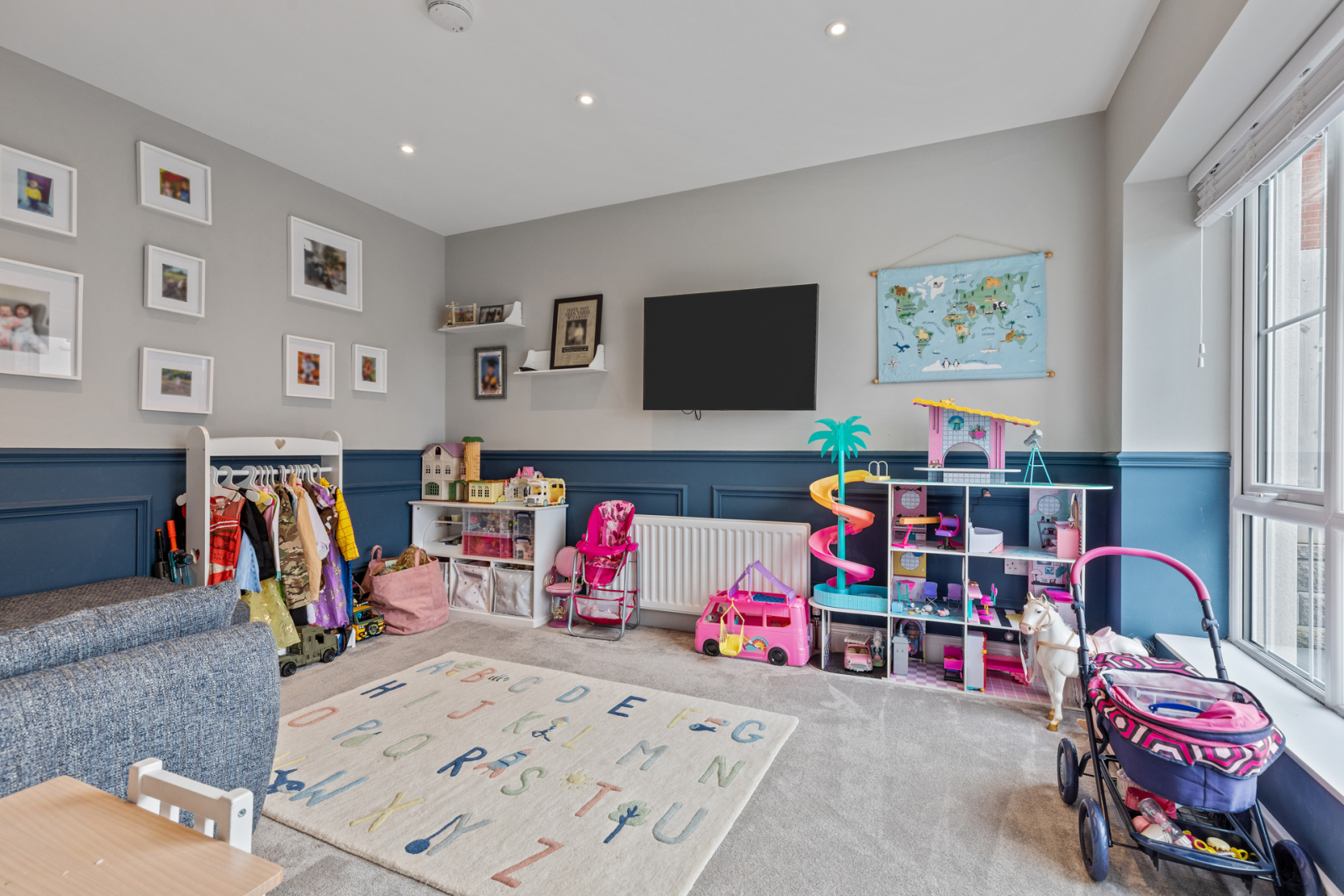 Upstairs, the property boasts four well-proportioned bedrooms, including a principal bedroom with en-suite shower room. A contemporary family bathroom serves the remaining bedrooms.