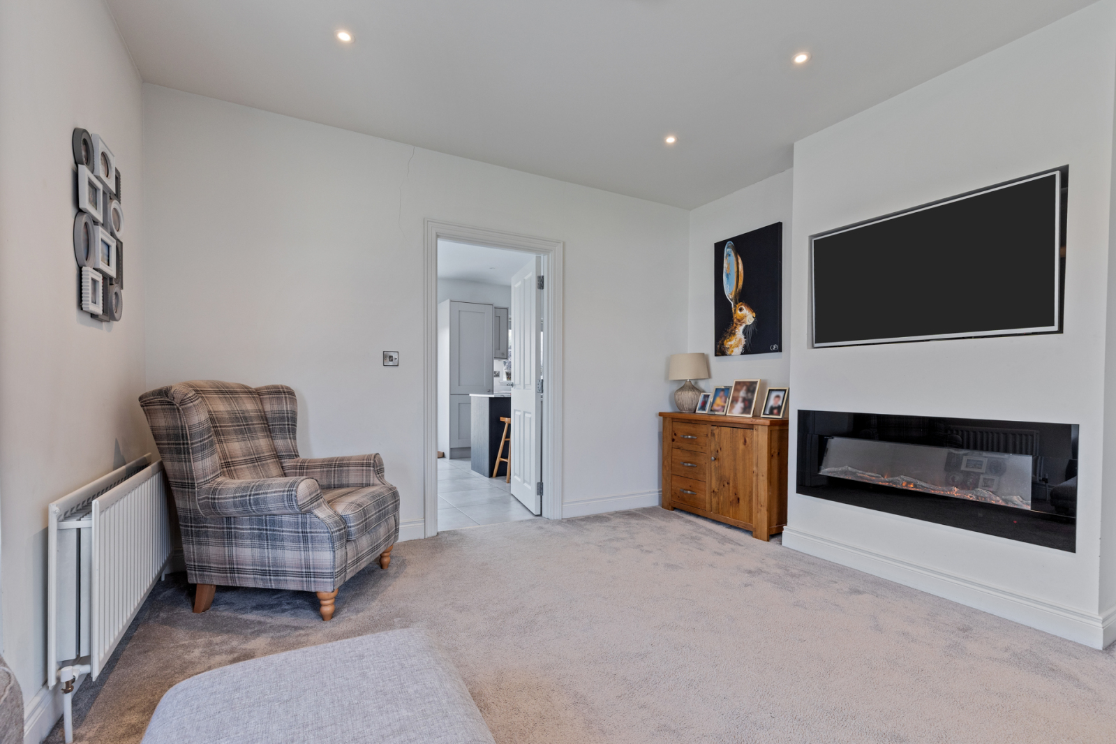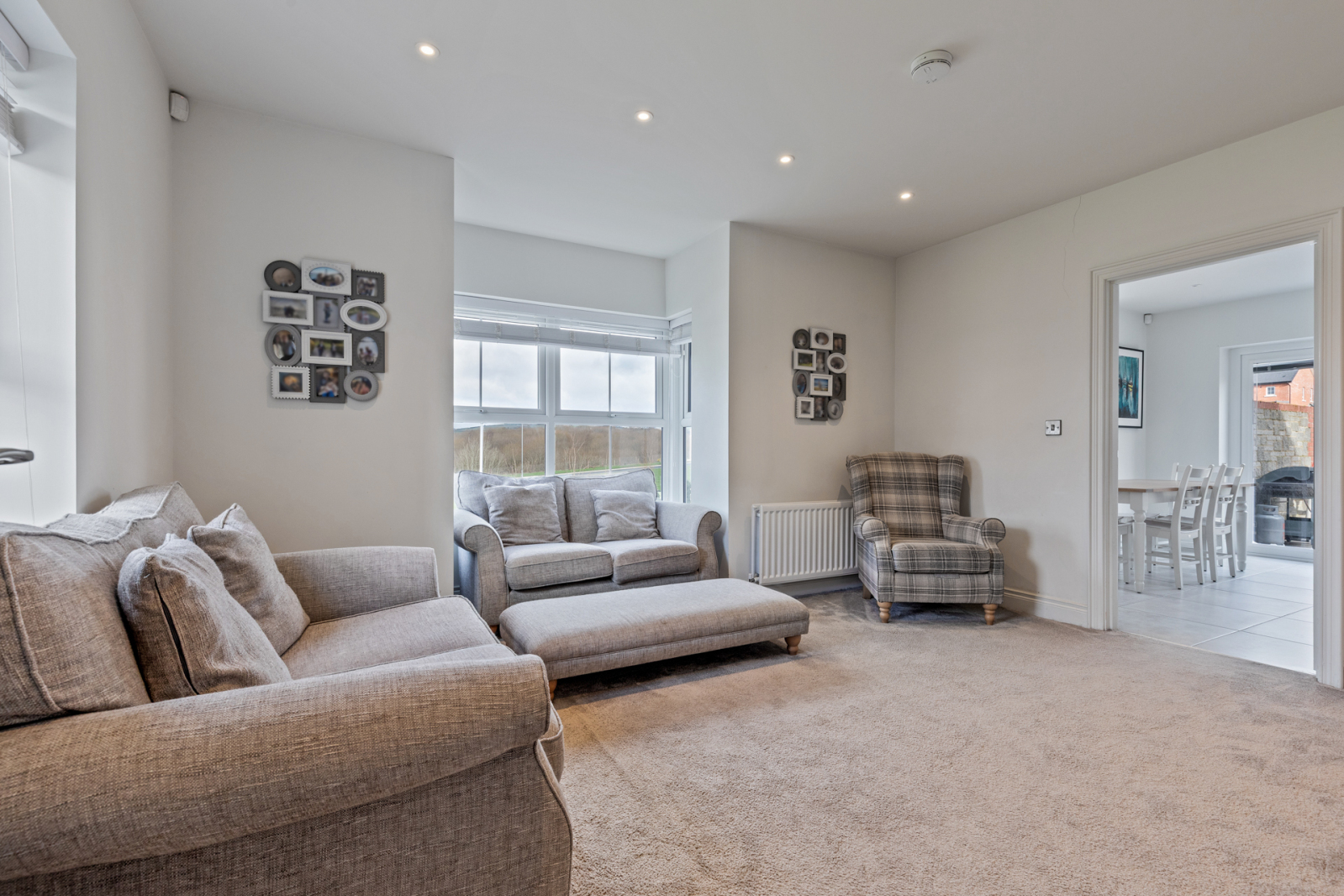 Dual aspect to front and side, feature sqaure bay window, recessed spotlighting, access to kitchen / dining room.