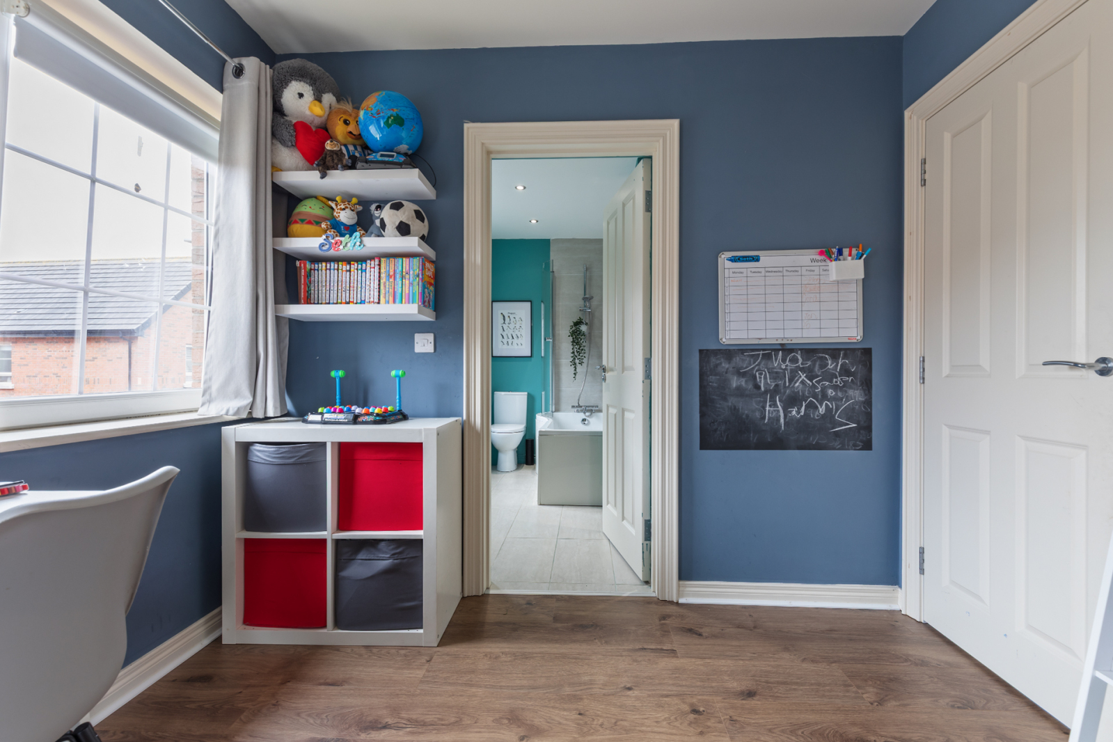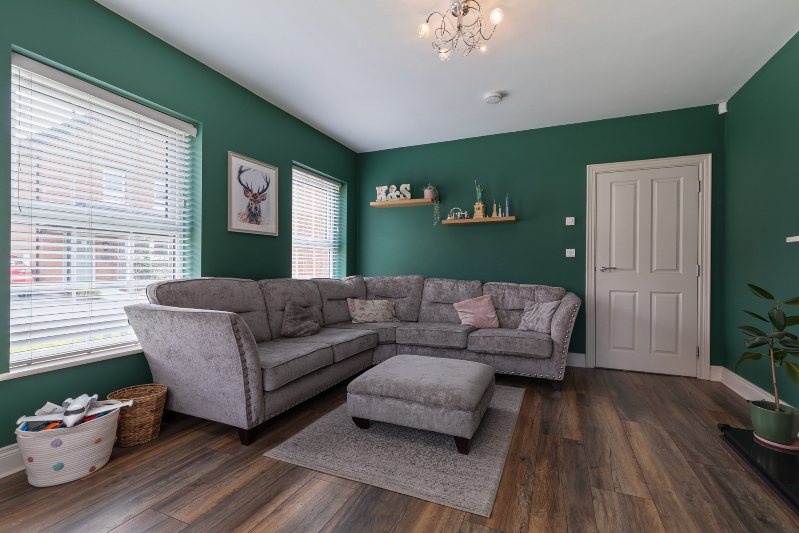 Laminate wood effect flooring, outlook to rear.