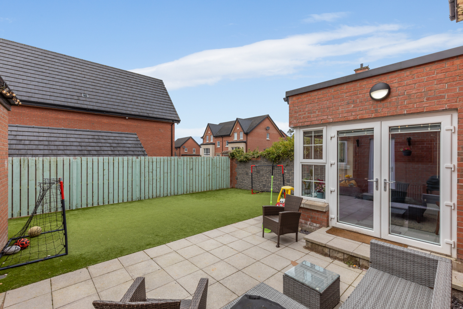 Externally to the front, there is an ample driveway for off street car parking, leading to detached garage. rear garden Laid in artificial grass.