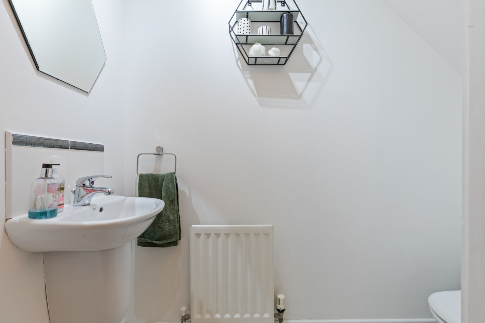 The ground floor comprises a fourth bedroom, ideal for guests, a home office, or additional family space. There is also an integrated garage providing excellent storage or secure parking, along with a separate utility room and separate WC.
