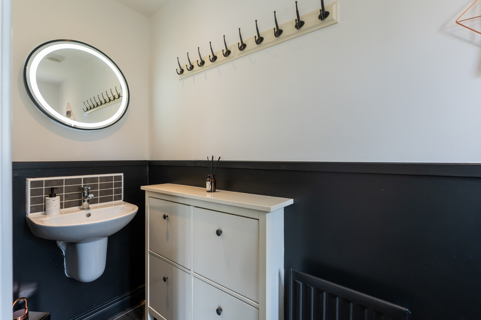 To the first floor there are three generously sized bedrooms, including a principal bedroom with its own en-suite shower room. A contemporary white suite family bathroom serves the additional bedrooms, completing the accommodation.