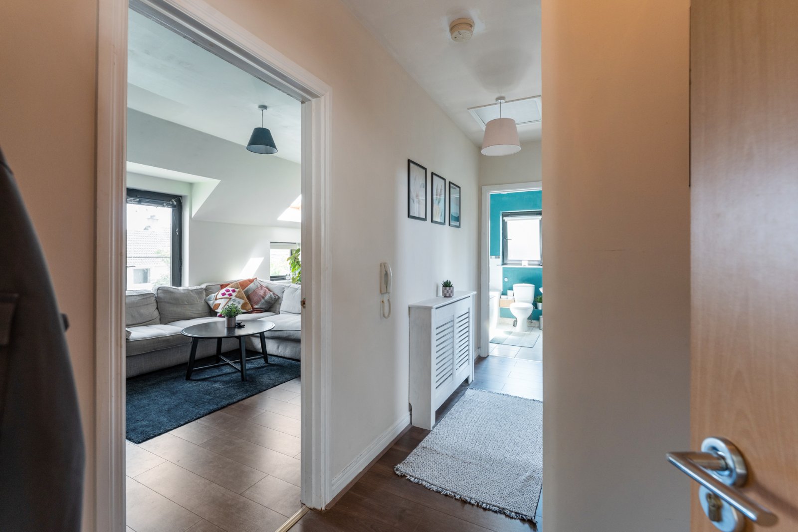 Hardwood front door leading through to reception hall