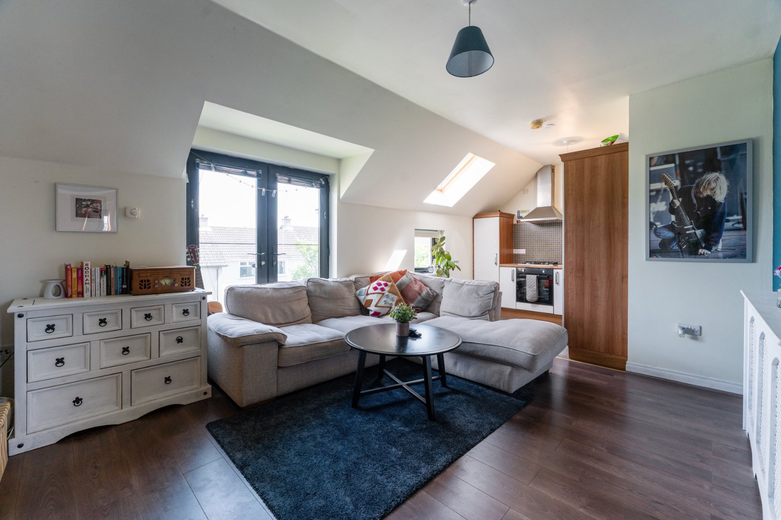 Outlook to rear, laminate wood effect flooring