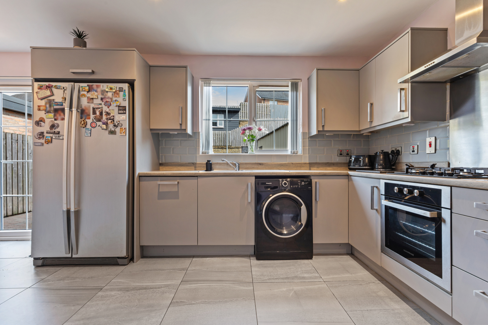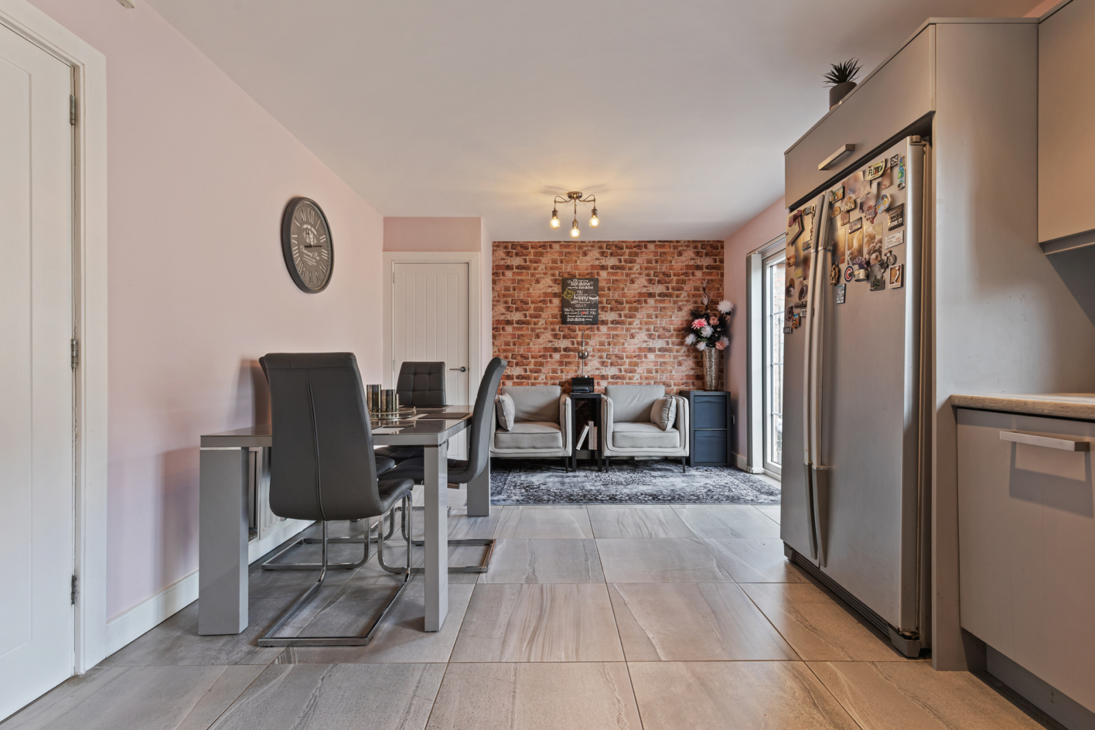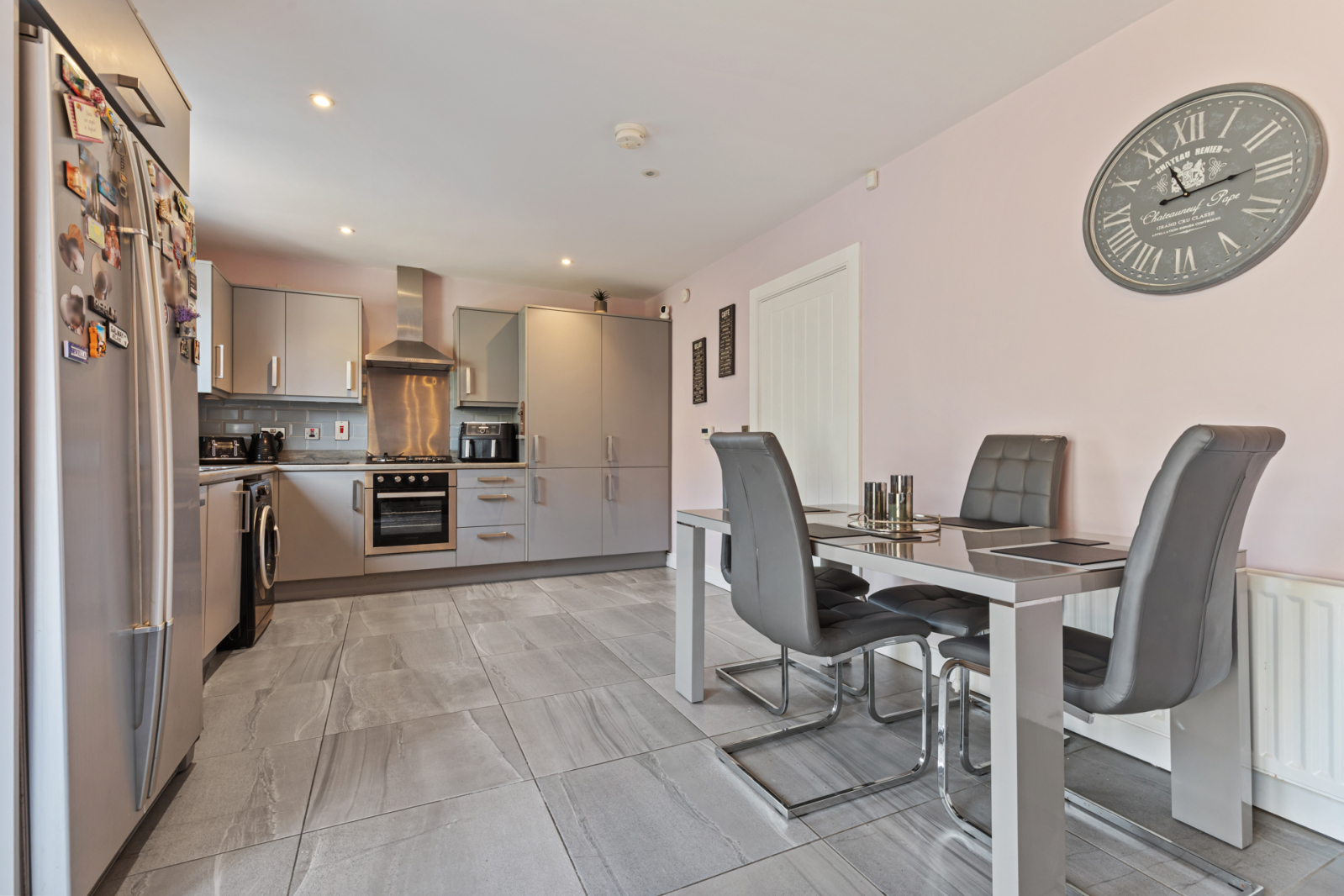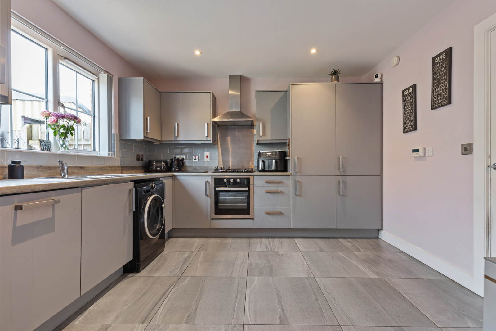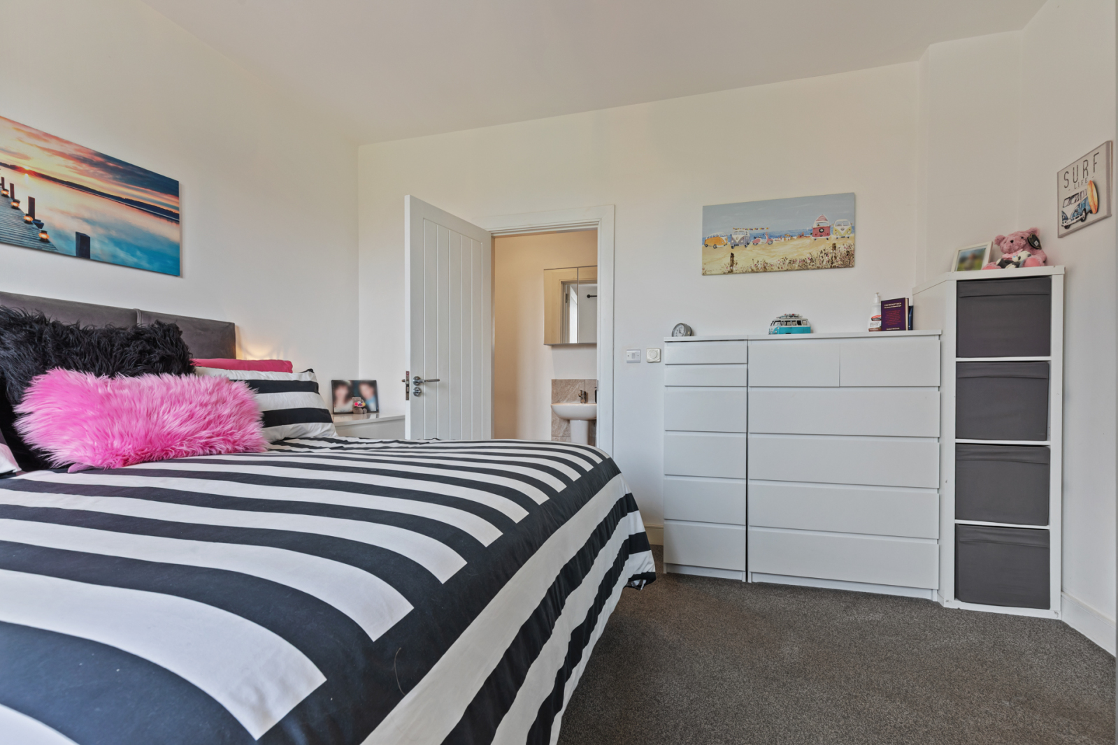 Internally, the home is immaculately presented throughout. A bright and welcoming hallway leads into a generously proportioned living room. There is a kitchen / dining area to the first floor, ideal for modern family living, with an abundance of natural light and access to the rear gardens. The accommodation continues to impress, offering three well-proportioned bedrooms. The principal bedroom benefits from a stylish ensuite shower room and a modern family bathroom complete with a white suite.