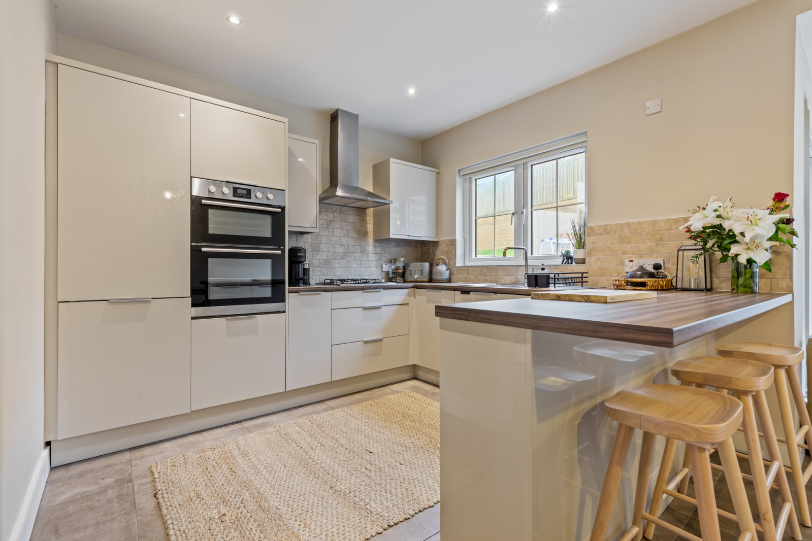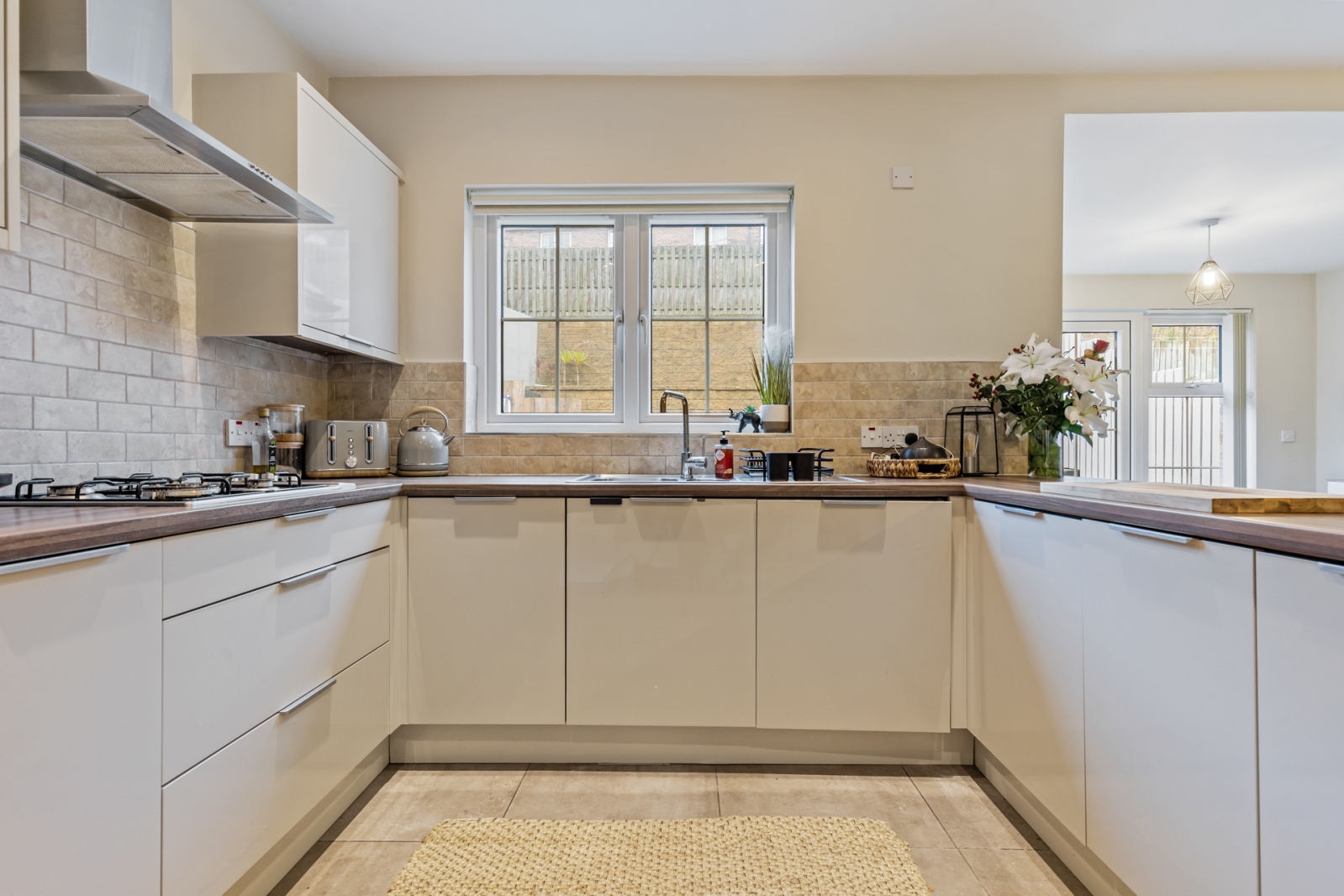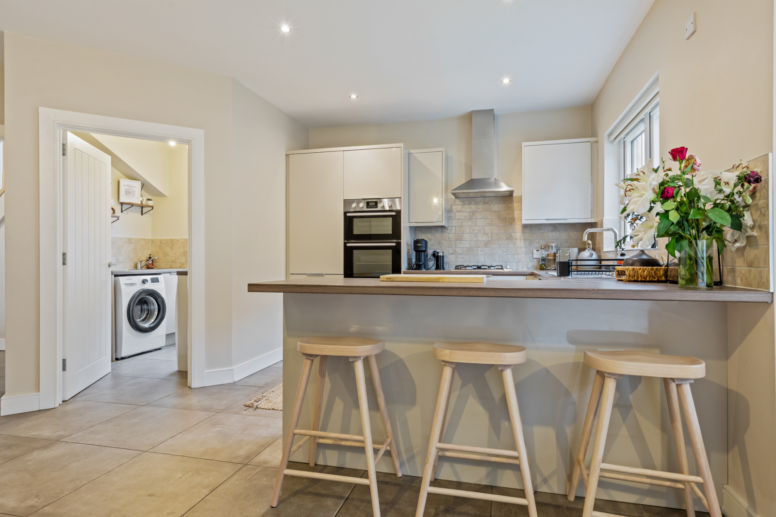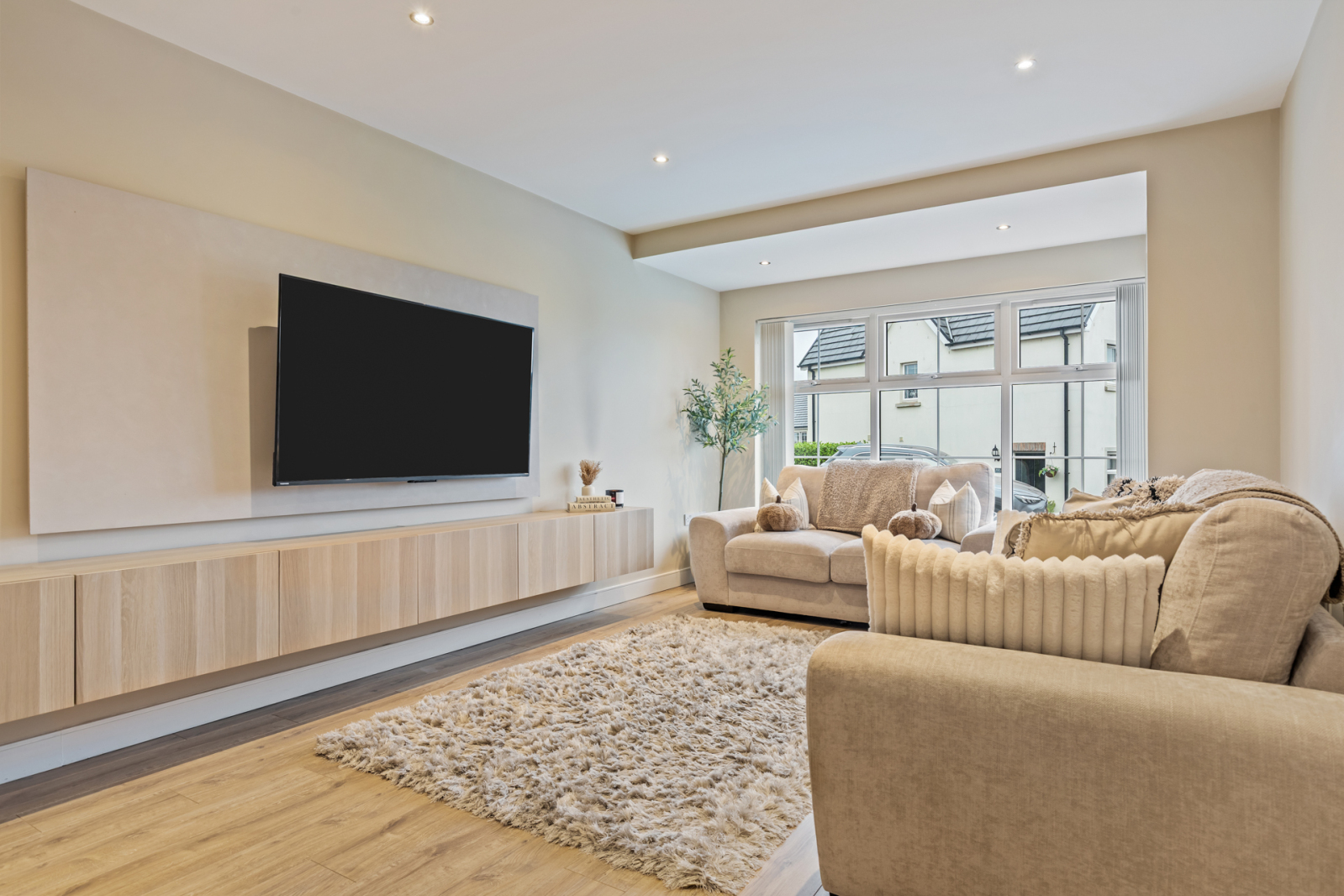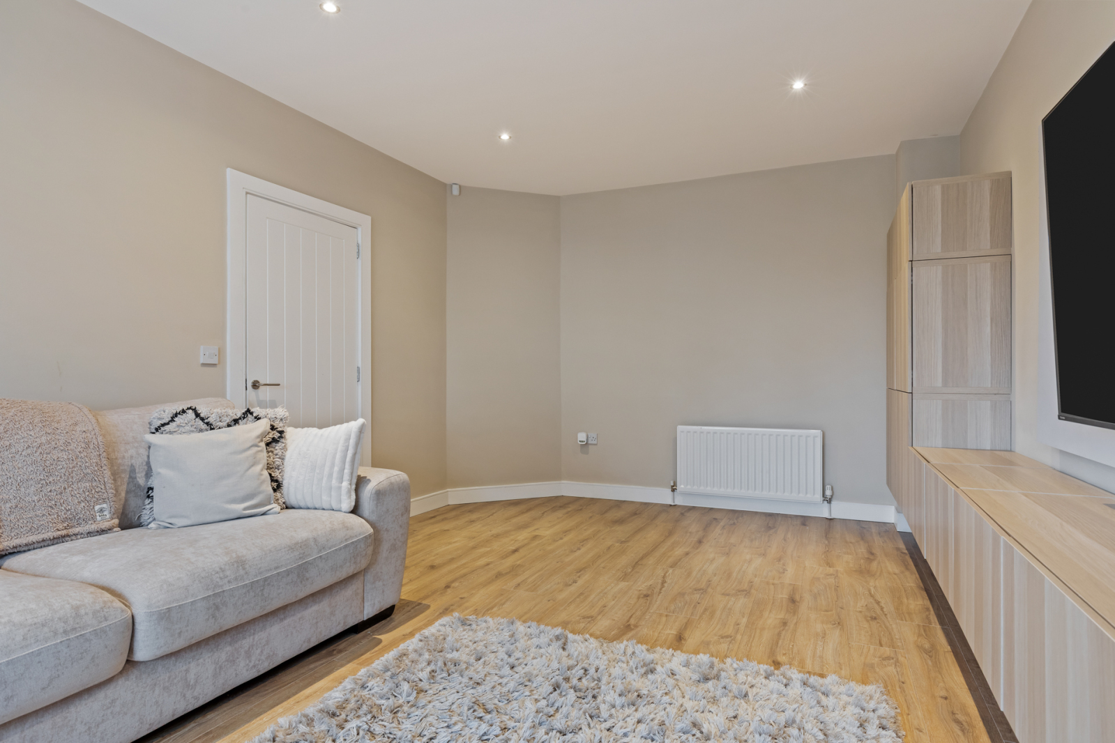Internally, the home is immaculately presented throughout. A bright and welcoming hallway leads into a generously proportioned living room. The heart of the home is the contemporary kitchen / living / dining area is ideal for modern family living, with an abundance of natural light with access to the rear gardens. To the first floor, the accommodation continues to impress, offering four well-proportioned bedrooms. The principal bedroom benefits from a stylish ensuite shower room and a modern family bathroom complete with a white suite.