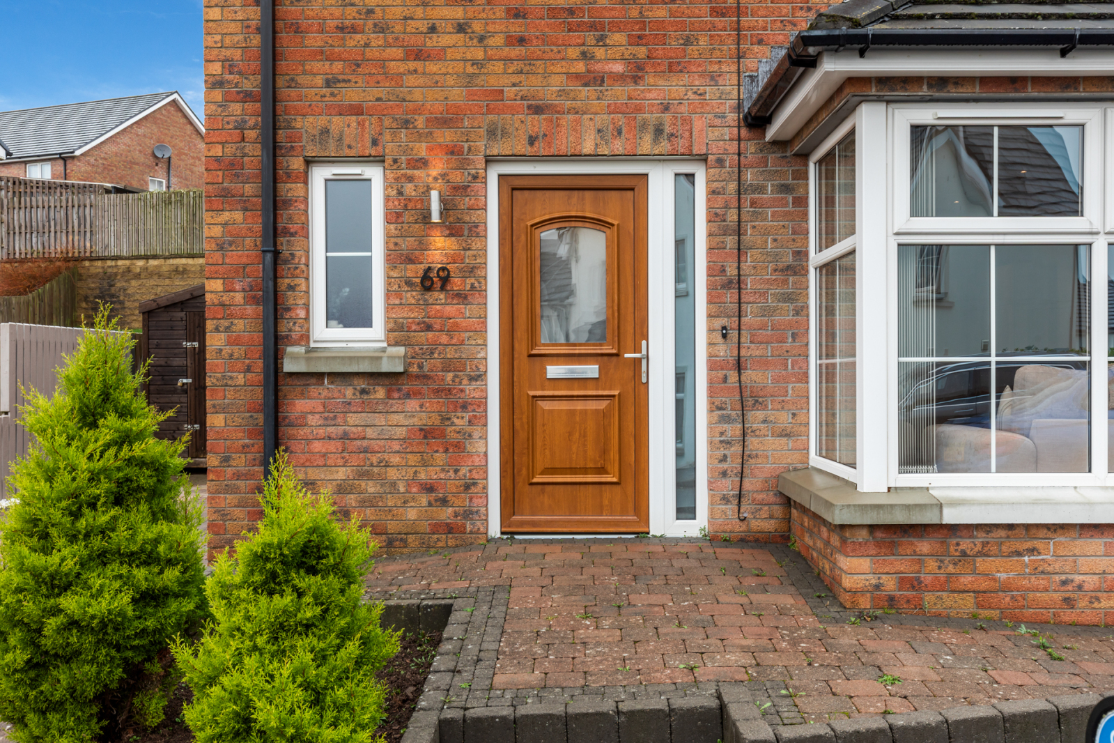 uPVC front door with glass inset and matching side light, leading through to reception hall.