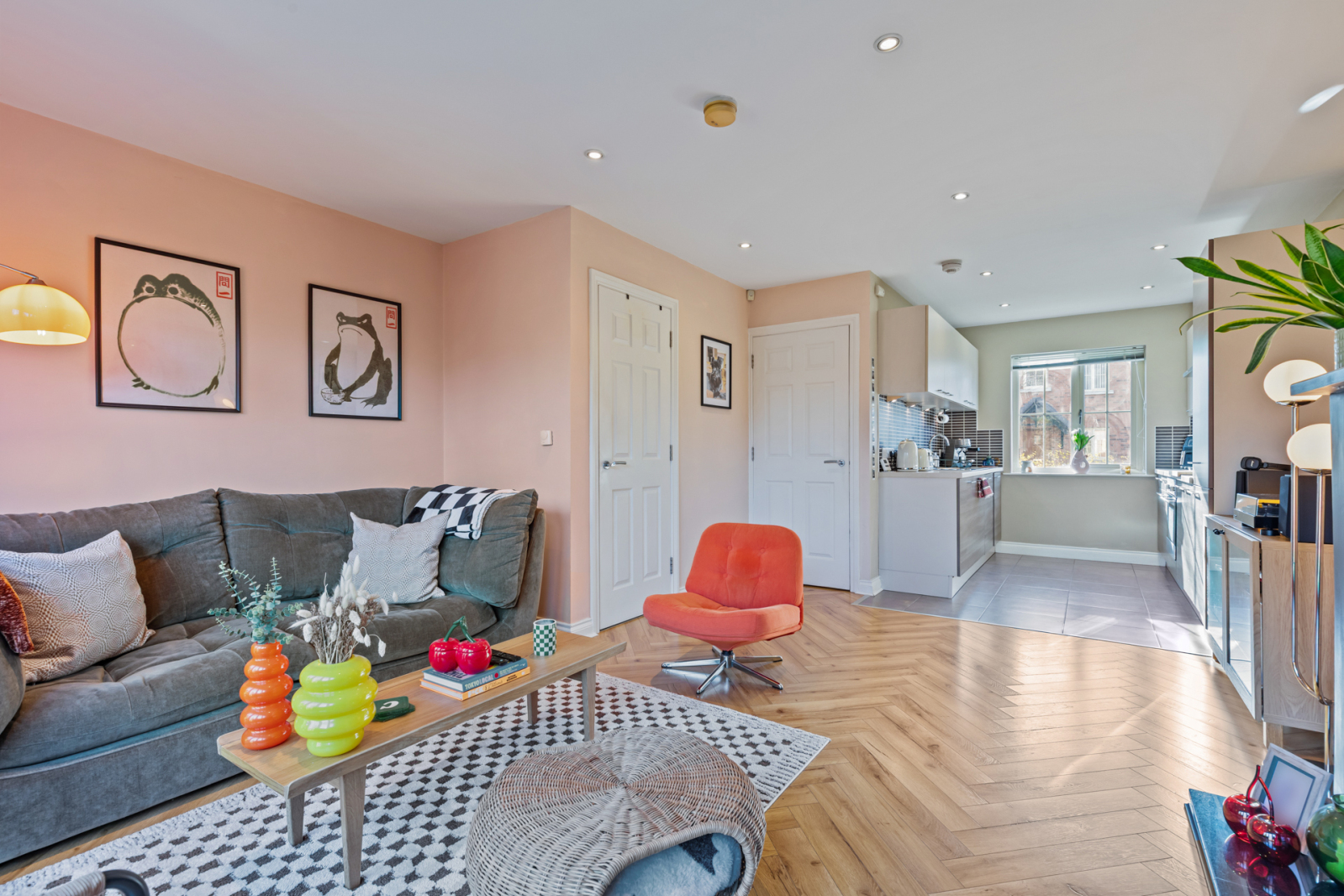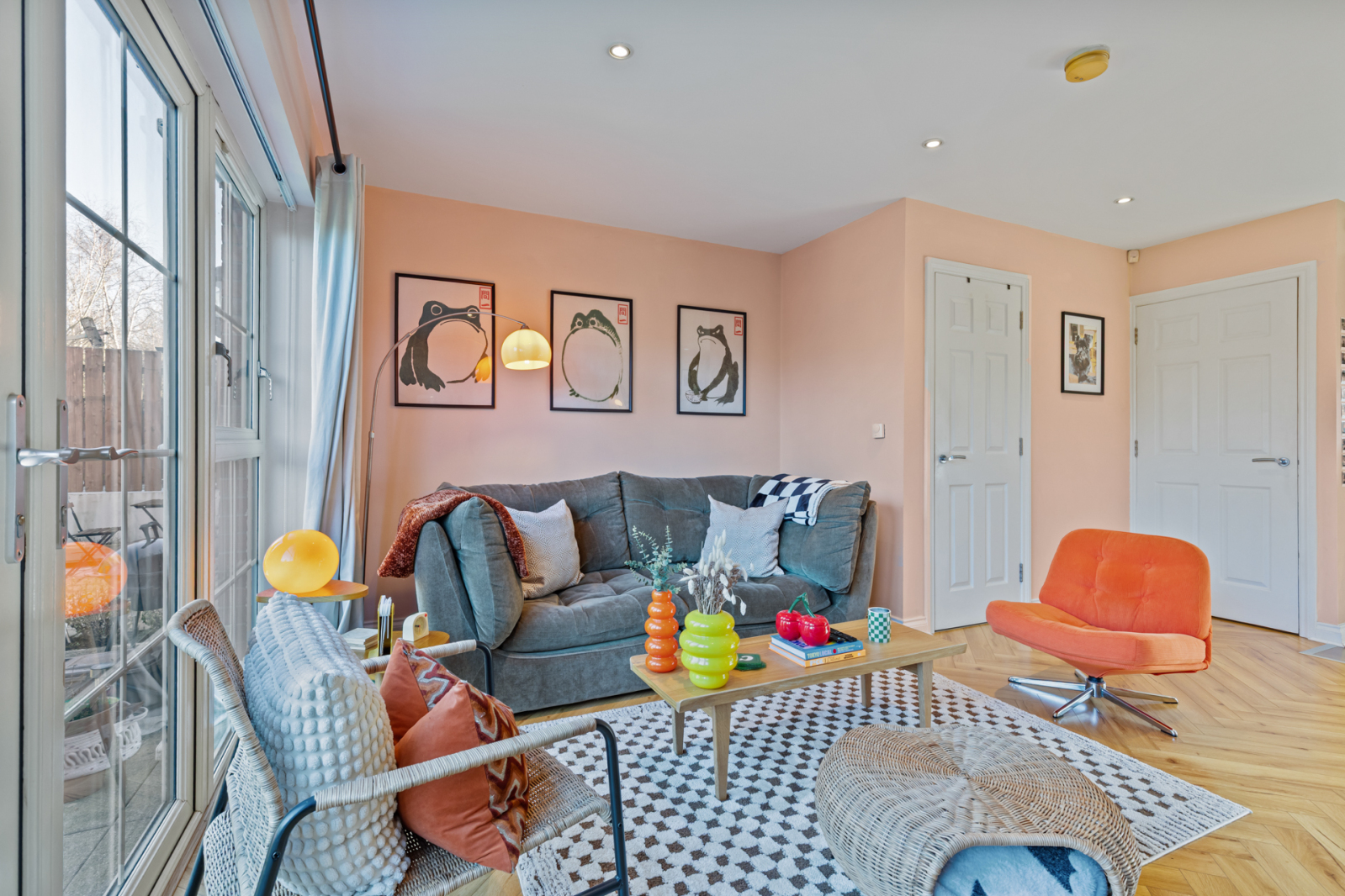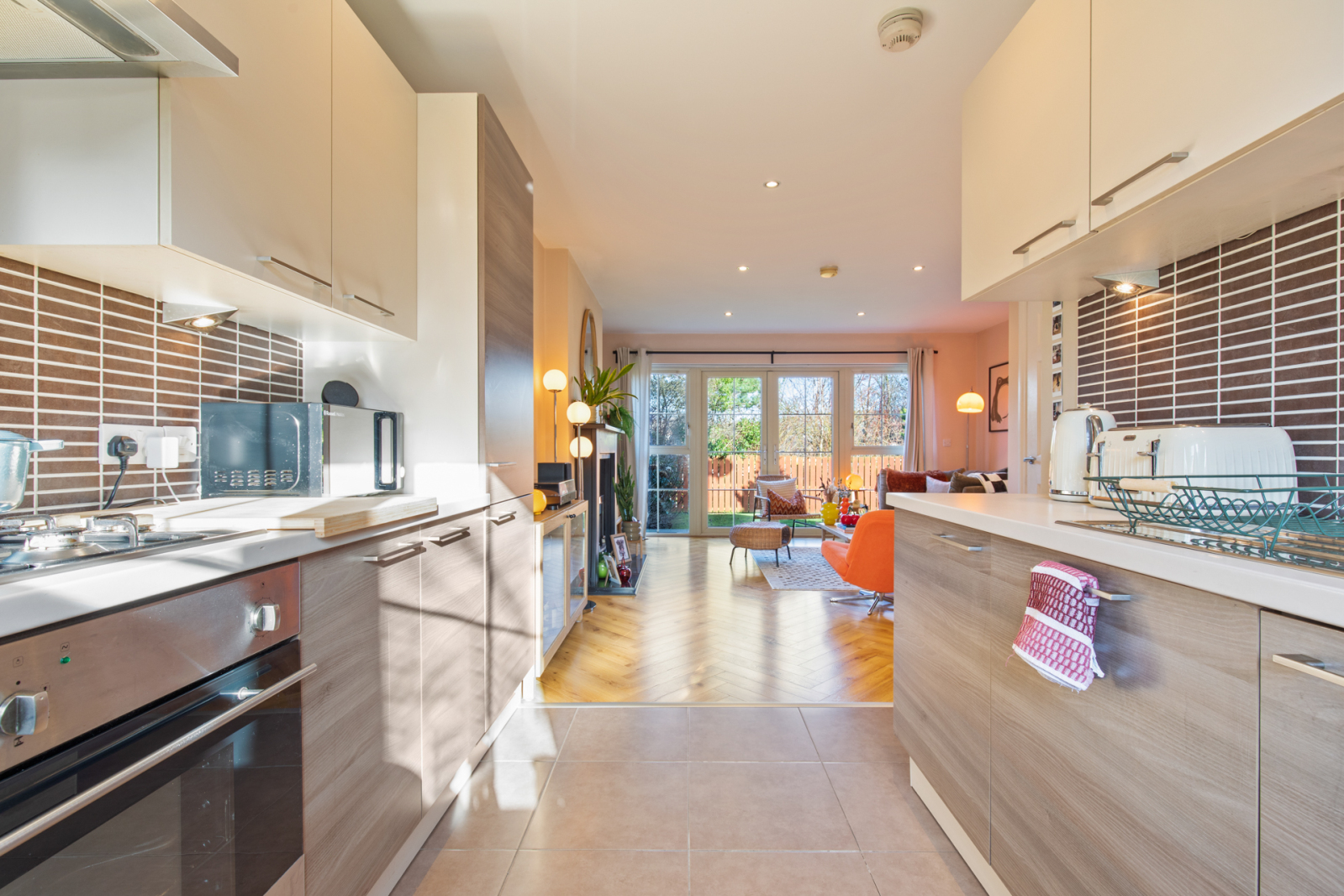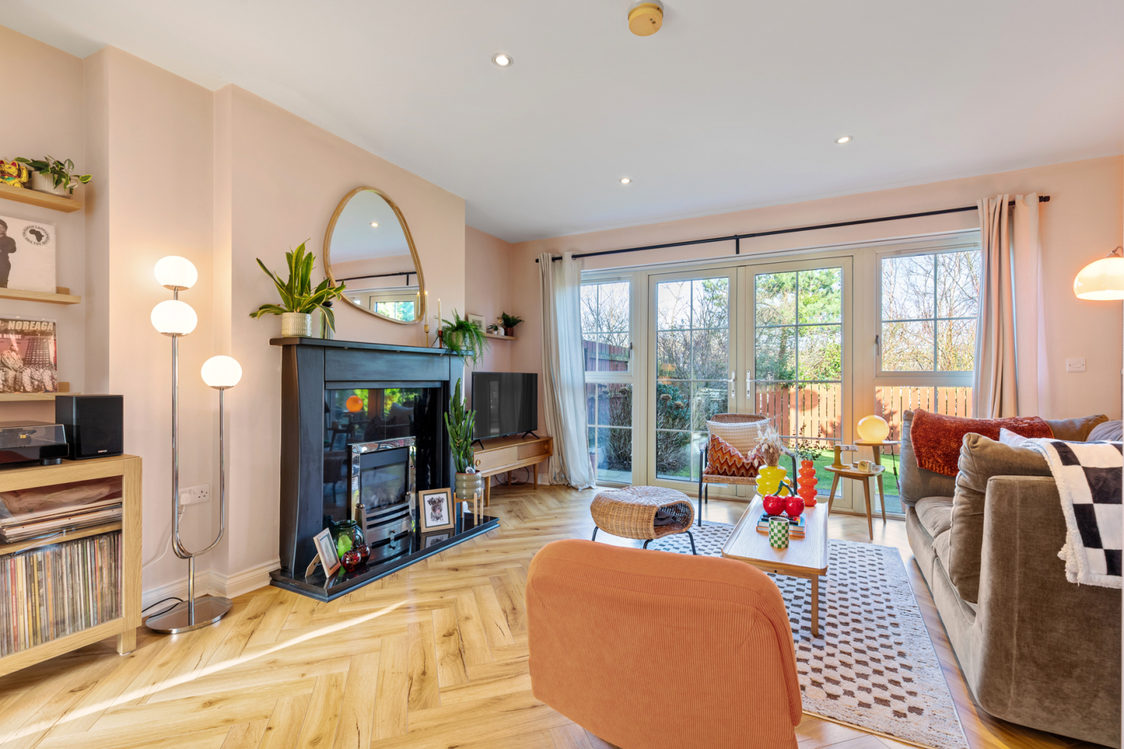 The property offers spacious and modern accommodation throughout, to include a welcoming entrance hall with wood laminate floor, cloak room and WC, a large open plan living room with kitchen and dining space, with French doors to a generous rear garden.