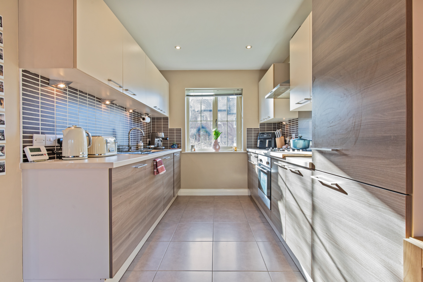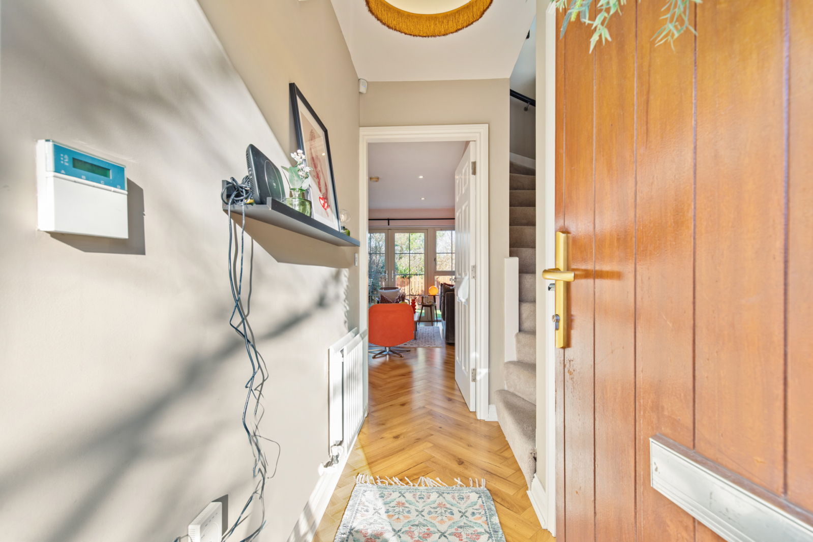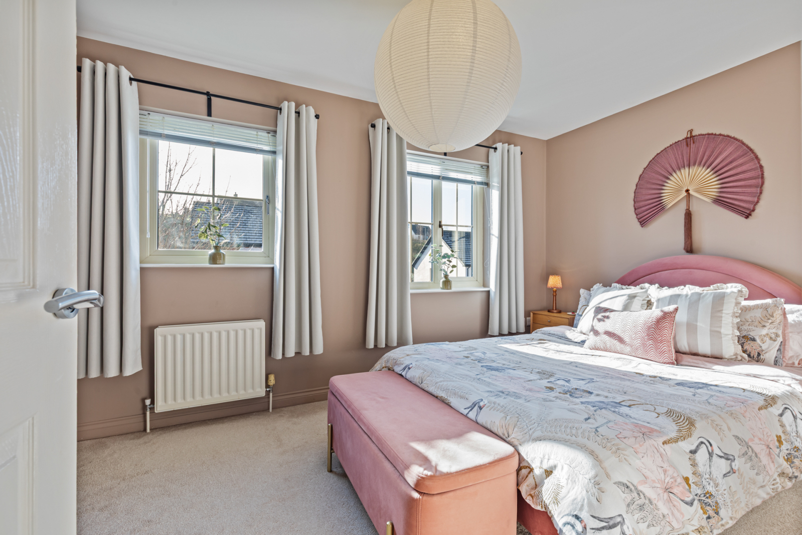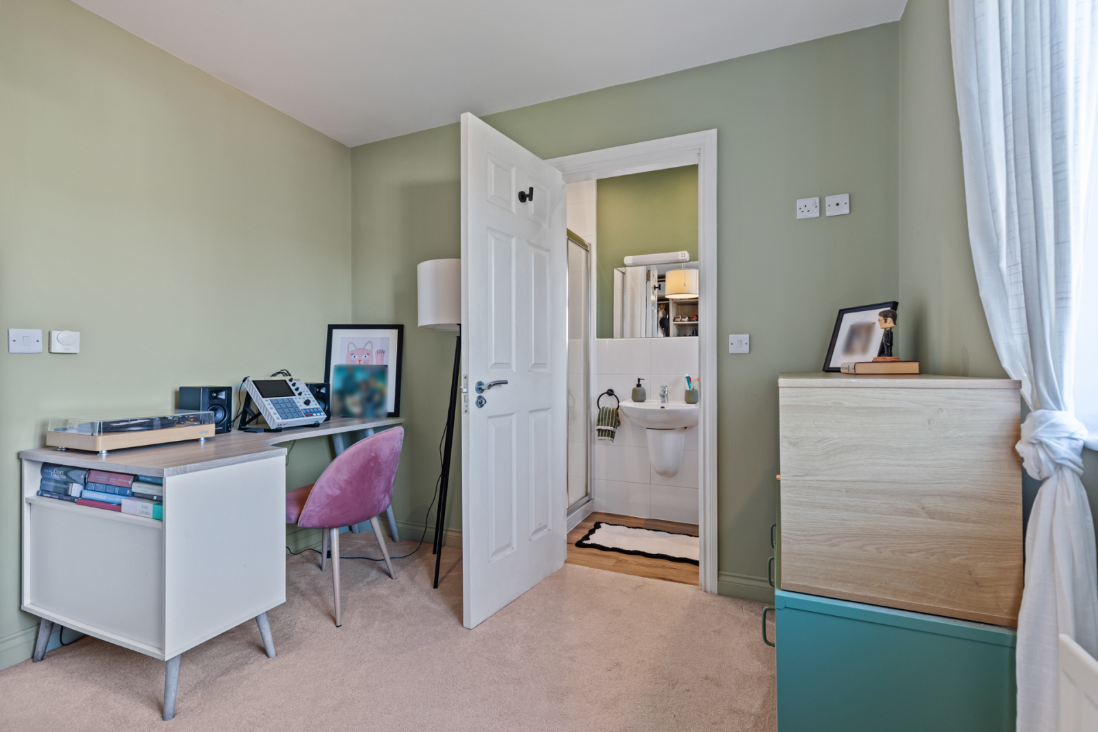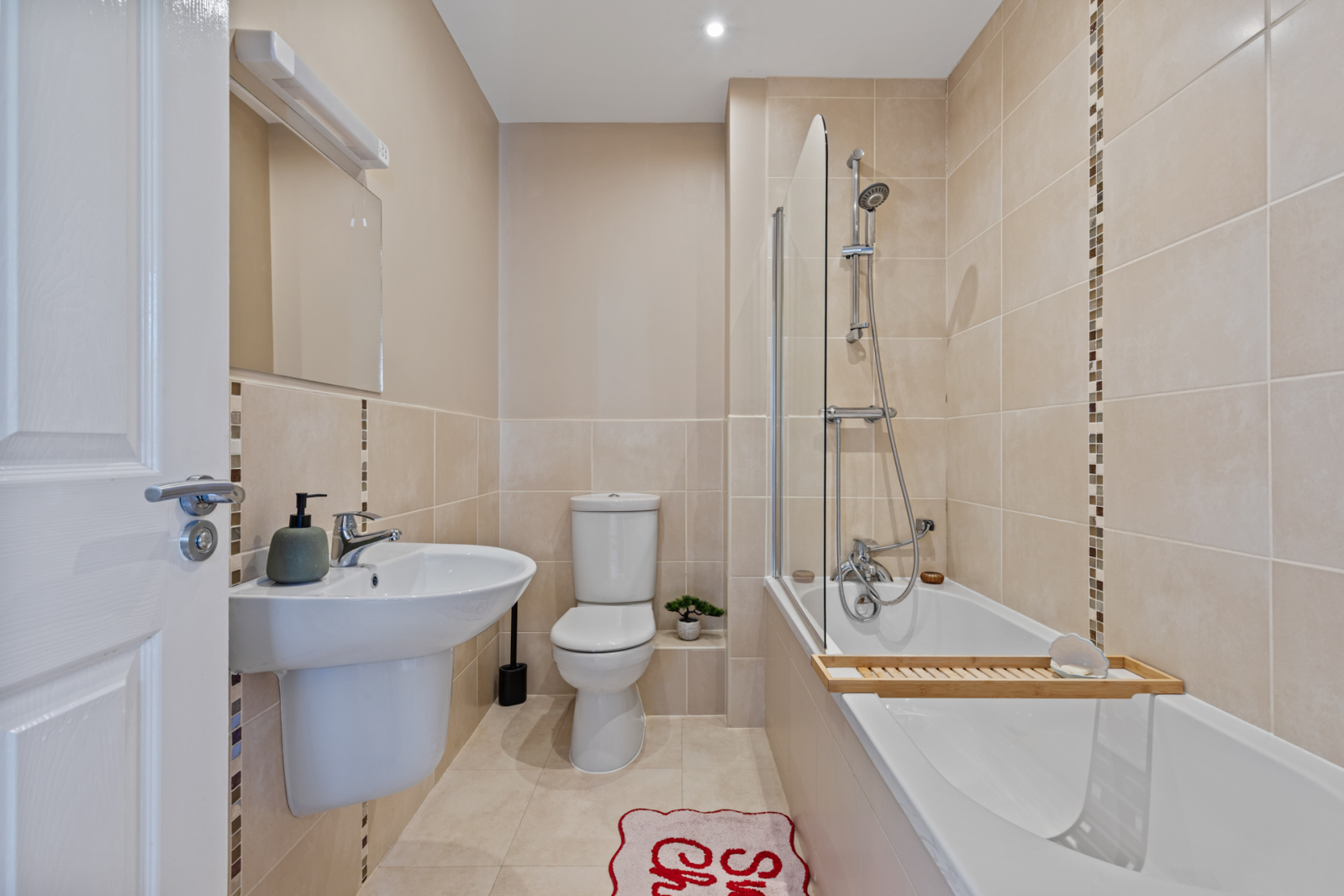 On the first floor, there are two good sized bedrooms, main bedroom with ensuite shower room and family bathroom in contemporary white suite.
