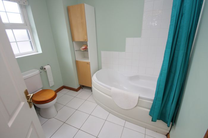 First Floor: 1 double bedroom with built in sliding door robes, 2 single bedrooms and a spacious bathroom with white suite to include a corner bath with shower over.