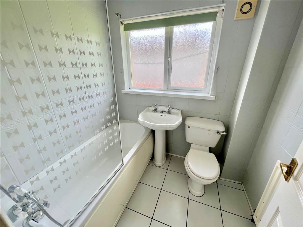 White suite: Panel bath, low flush w.c, pedestal wash hand basin.