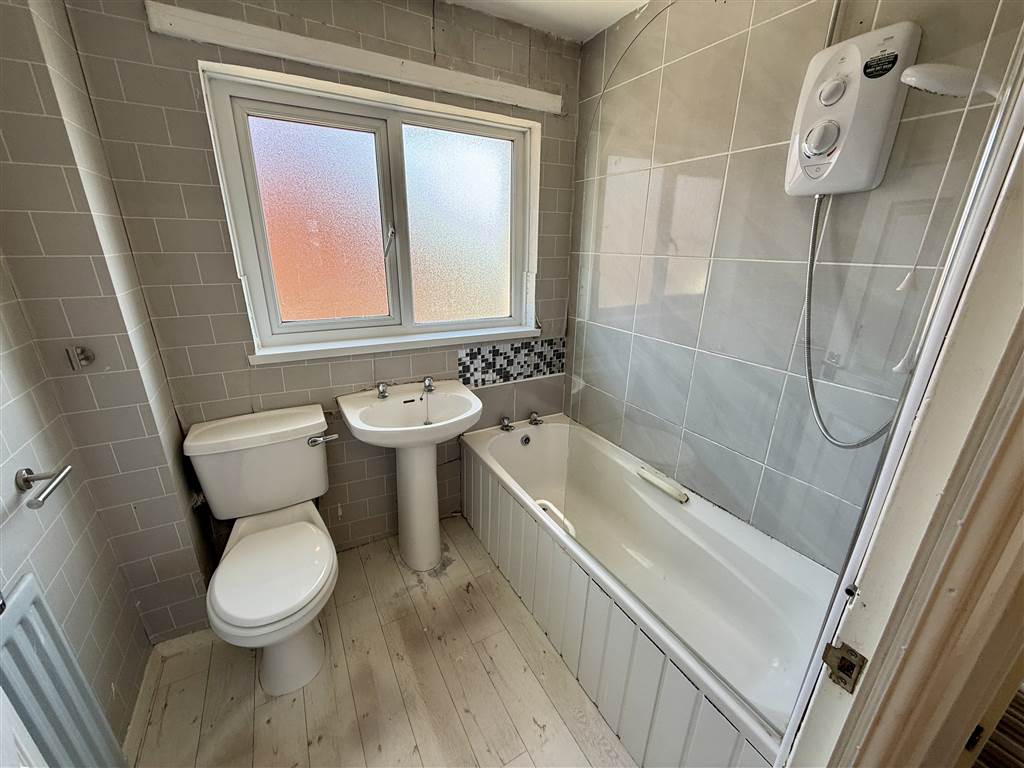 White suite: Panel bath, low flush w.c, pedestal wash hand basin.