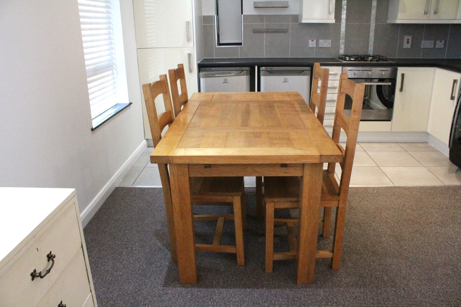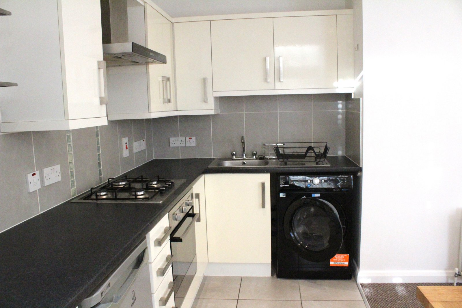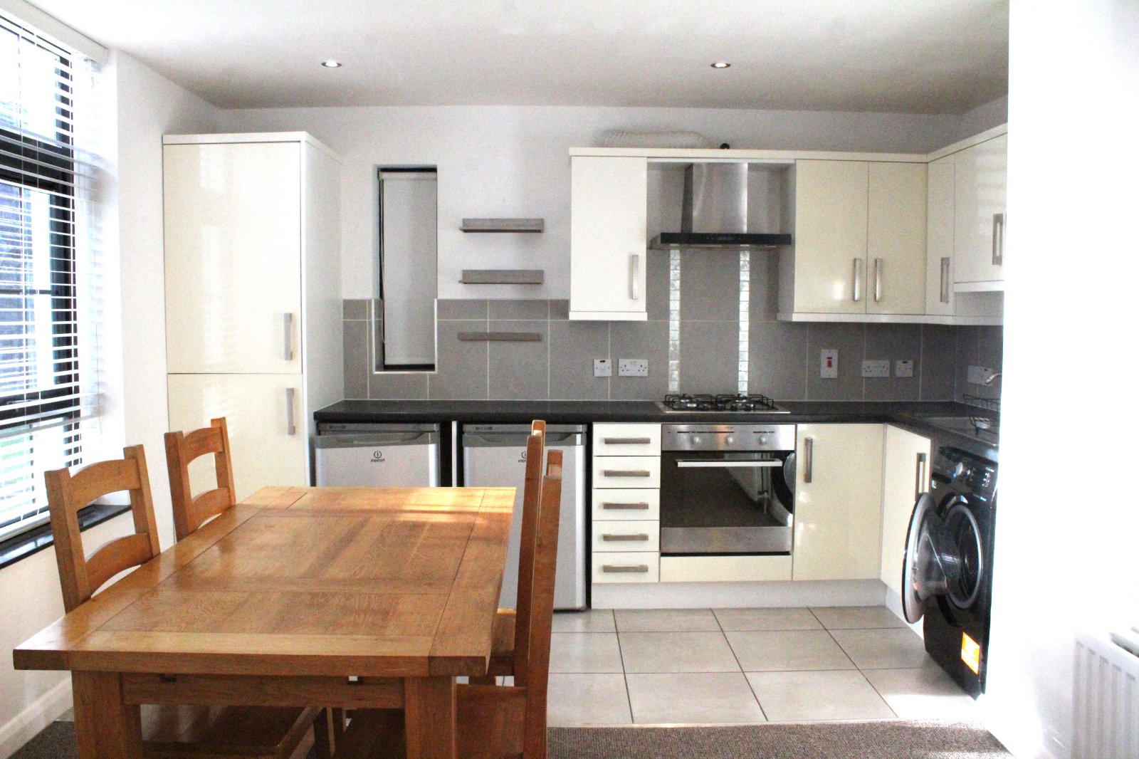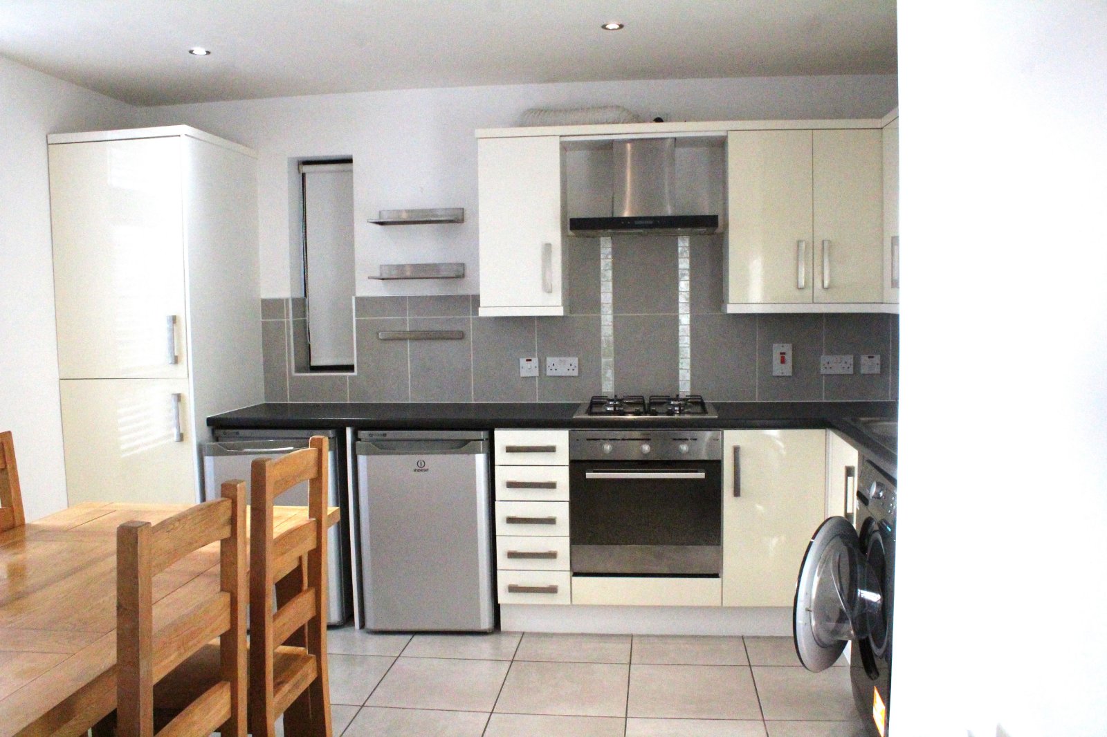 Comprising Of One Bowl Stainless Steel Sink Unit With Mixer Tap. Laminated Work Surfaces. Excellent Range Of High And Low Level Units With Door Furniture. Integrated Four Ring Gas Hob. Integrated Electric Fan Oven. Overhead Stainless Steel Extractor Fan. Freestanding Fridge, Freezer And Washer Dryer. Partly Tiled Walls. Tiled Flooring. Recessed Ceiling Lighting.