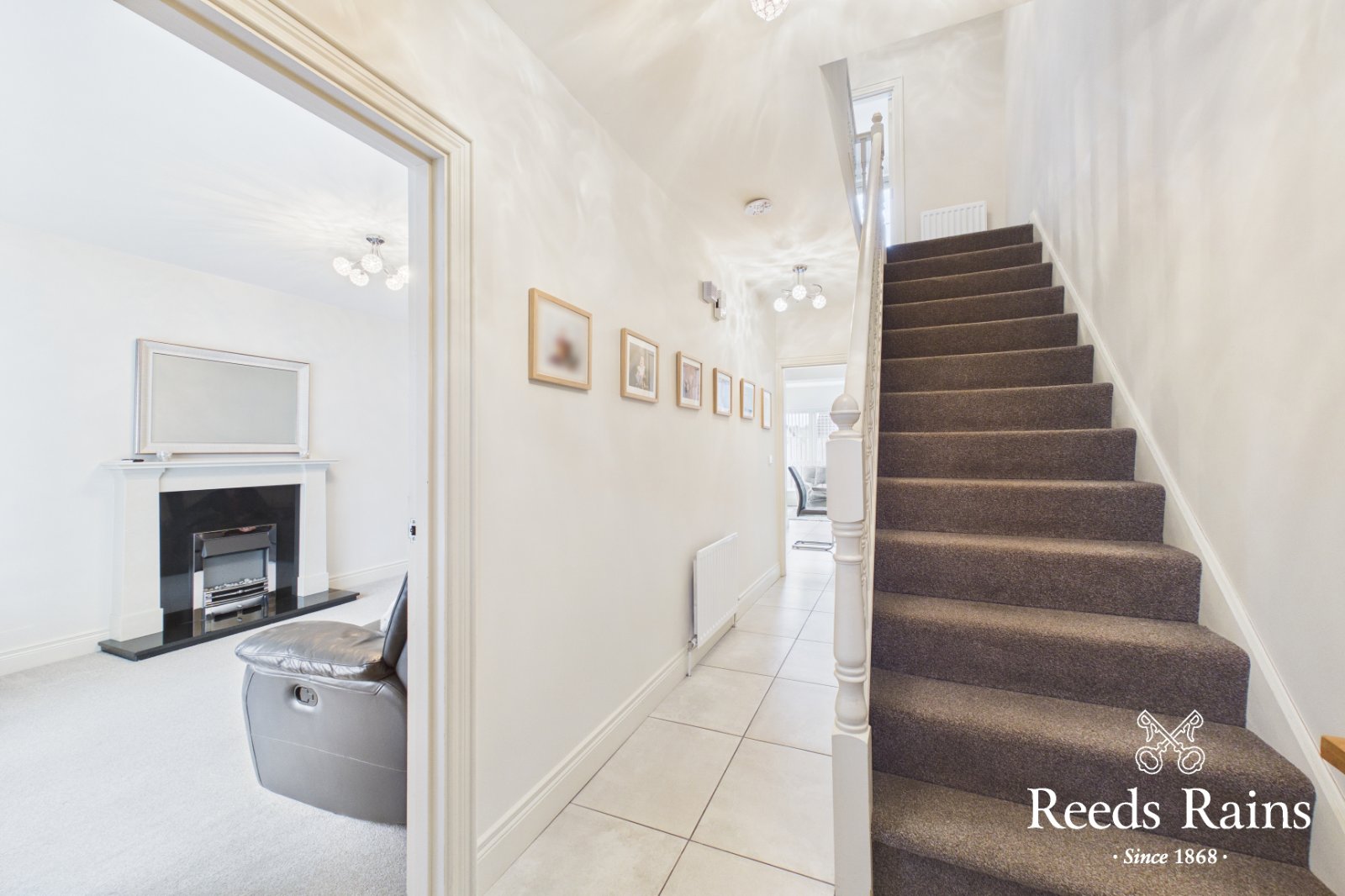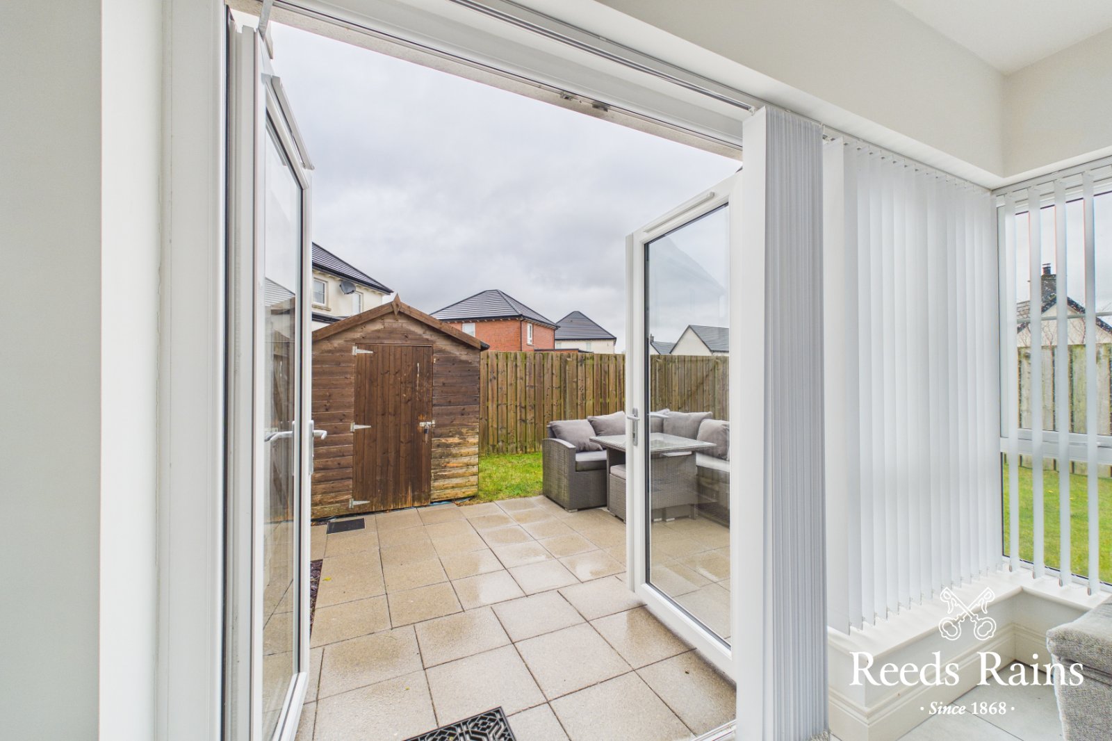 Garden area to front in lawn and shrubbery. Ample driveway car parking for 2+ cars. Side access. Enclosed, private rear garden bordered by double sided fencing in lawn and paved patio area. Garden shed. Outside tap / light.