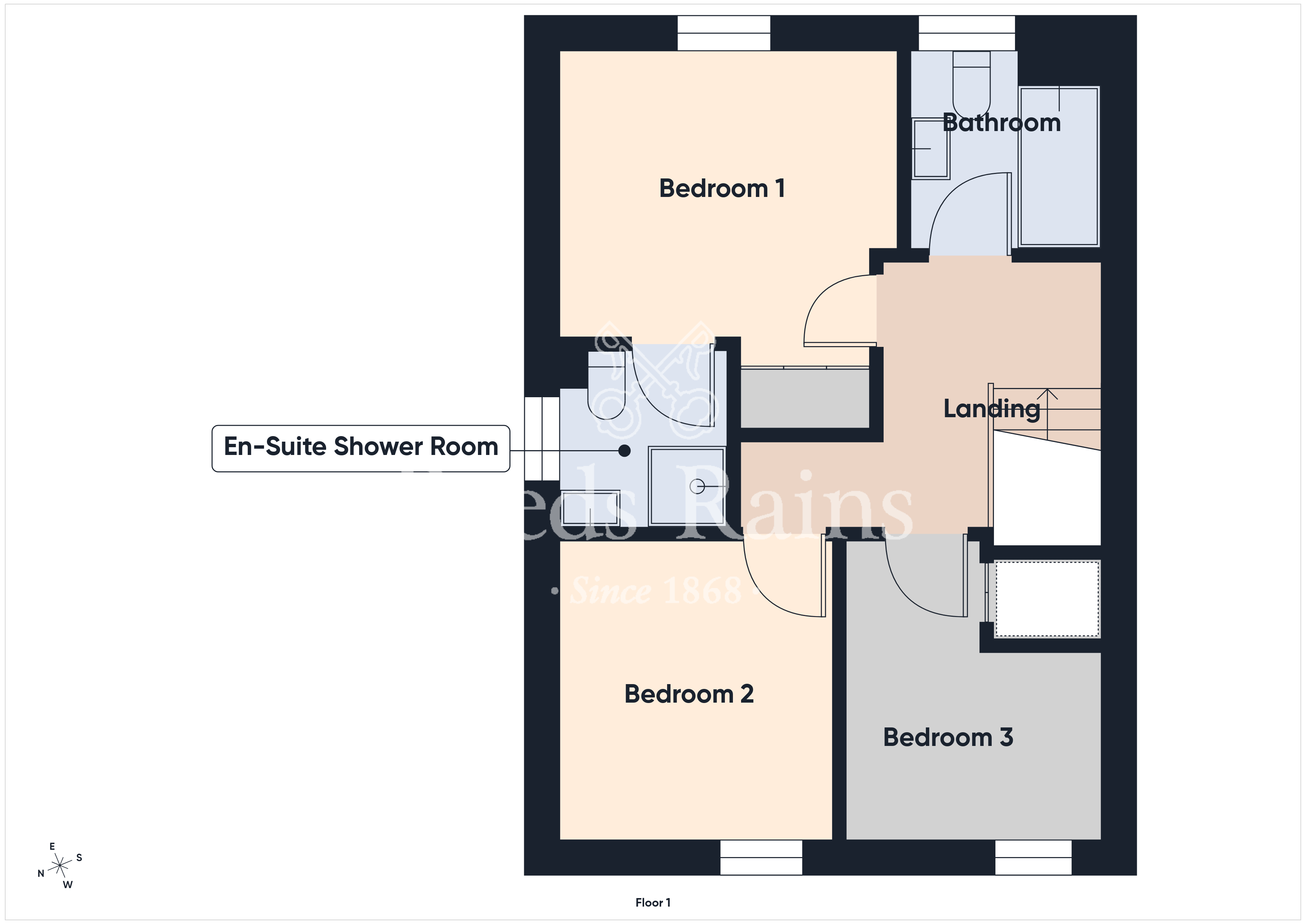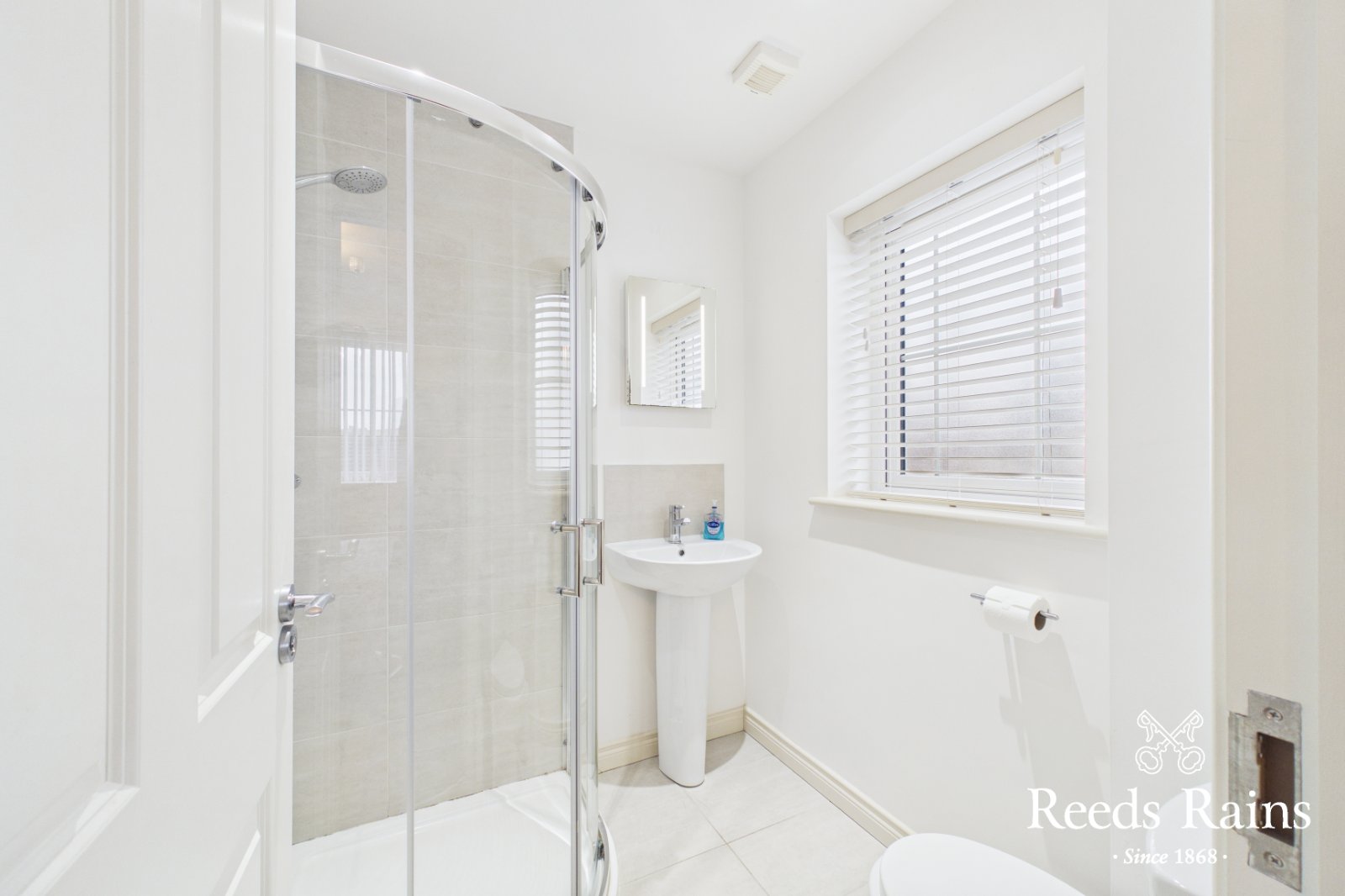 Comprising fully tiled corner shower cubicle with thermostatically controlled shower unit with telephone hand shower. Pedestal wash hand basin with chrome dual mixer tap and tiled splash back. Dual flush w/c. Partly tiled walls. Ceramic tiled flooring. Recessed spotlighting. Extractor fan.